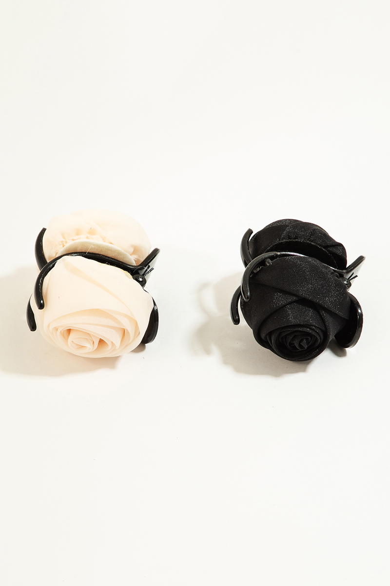 • This hair claw features a fashionable small sheer rose flower set style. Experience refined sophistication with this understated yet stylish piece.