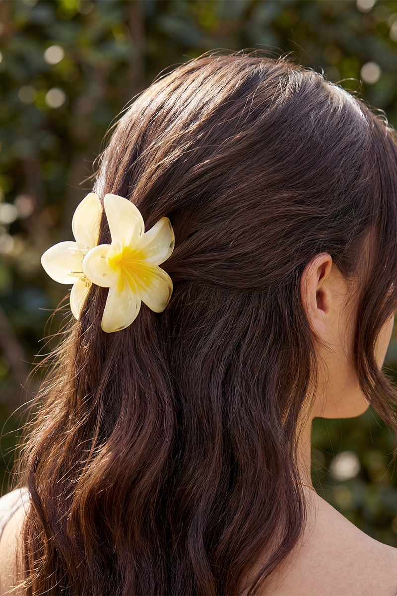 • This hair claw brings a stunning hawaiian flower style. Unveil modern elegance with this subtly intricate hair claw.