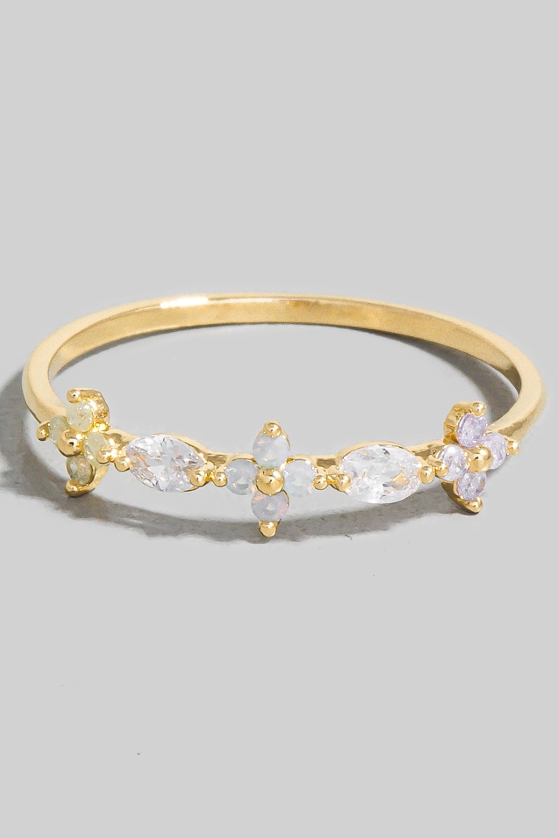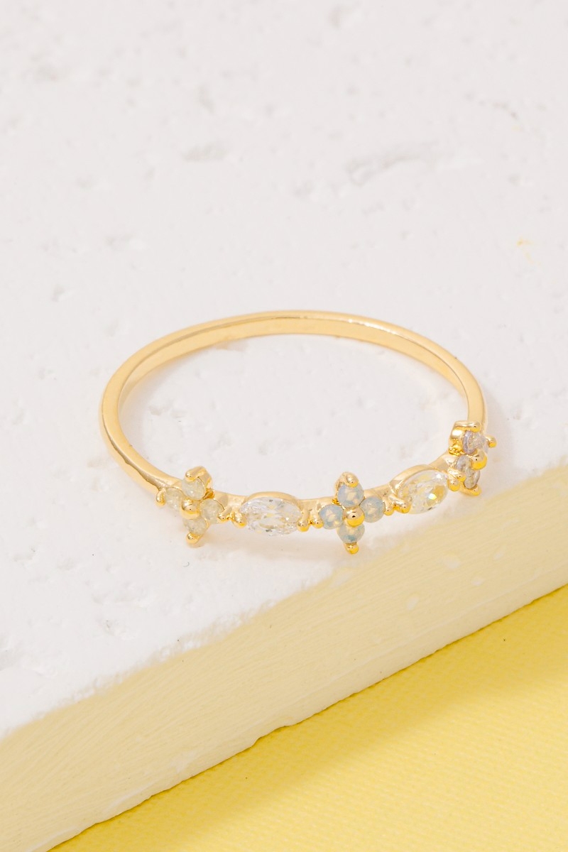 • This ring brings a stunning multi flower rhinestone style. Experience a burst of creativity in accessorizing as this piece effortlessly sets the tone for your unique style.