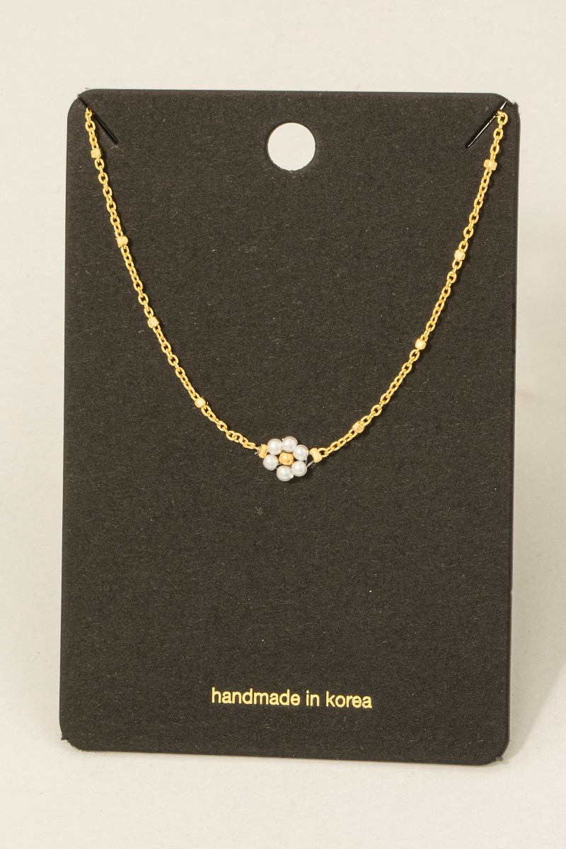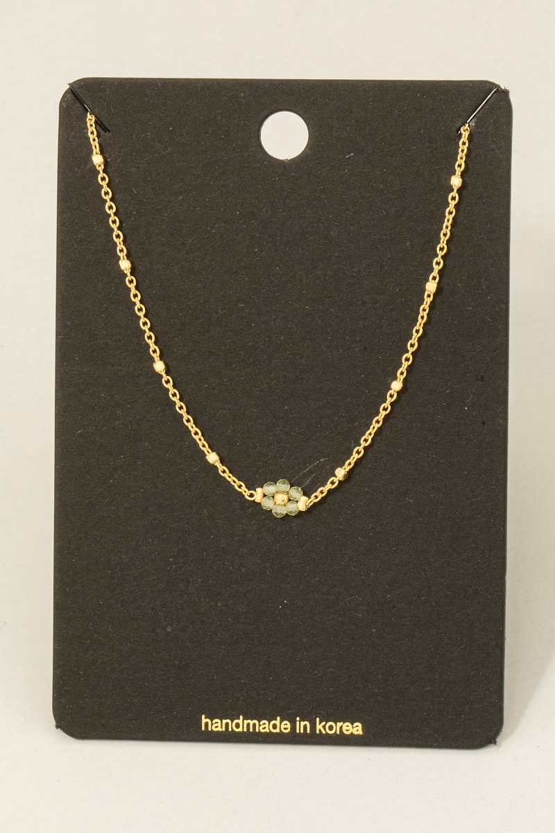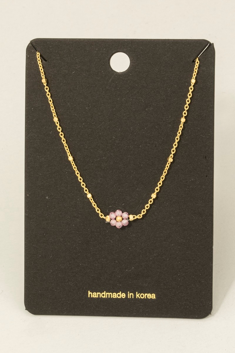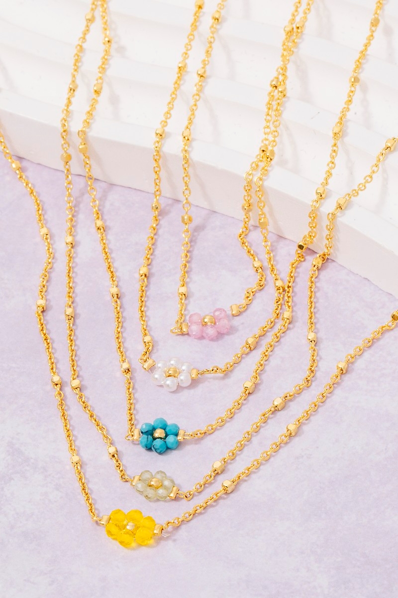 • This chain necklace displays a vibrant beaded flower pendant dainty style. Discover the perfect balance of subtlety and flair as this chain necklace effortlessly completes your look.