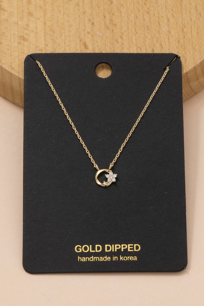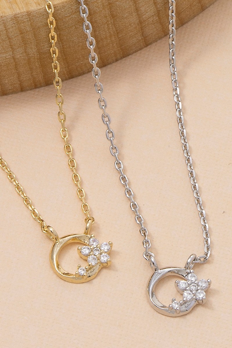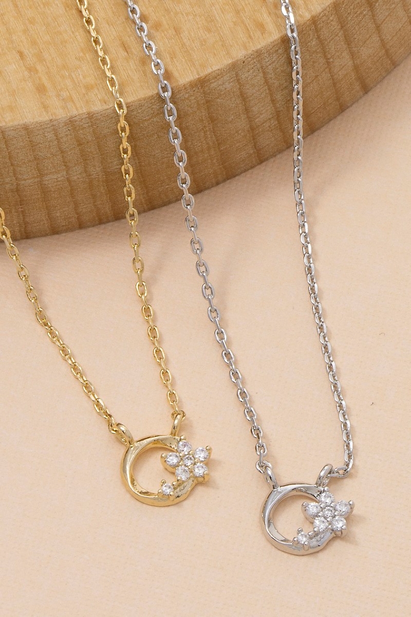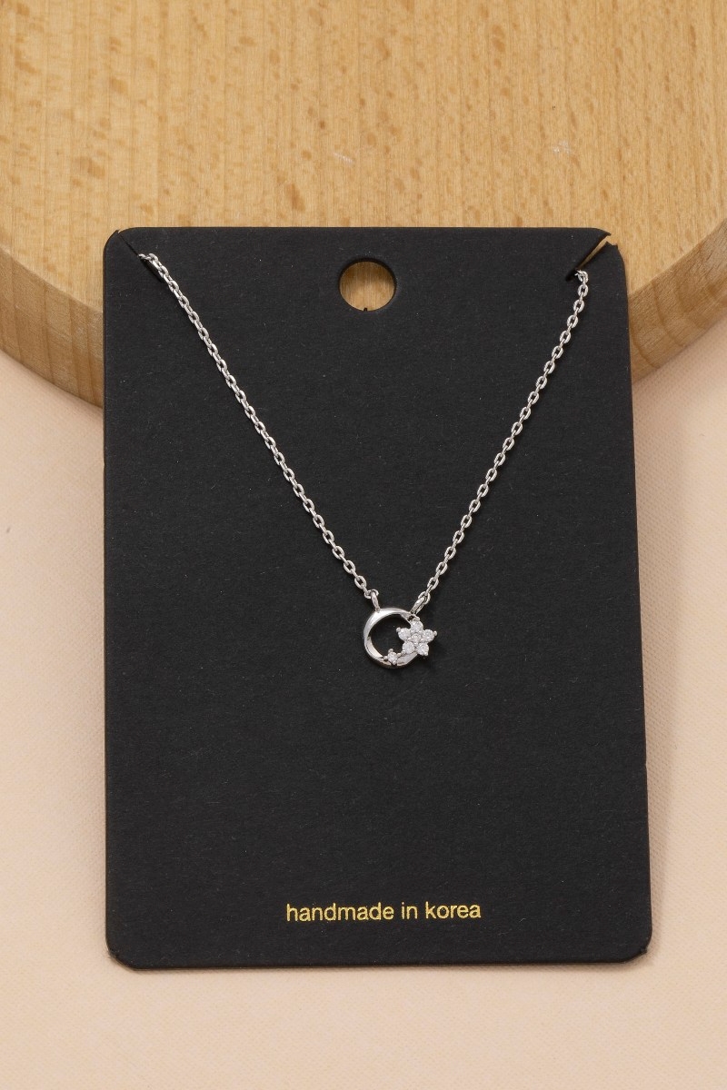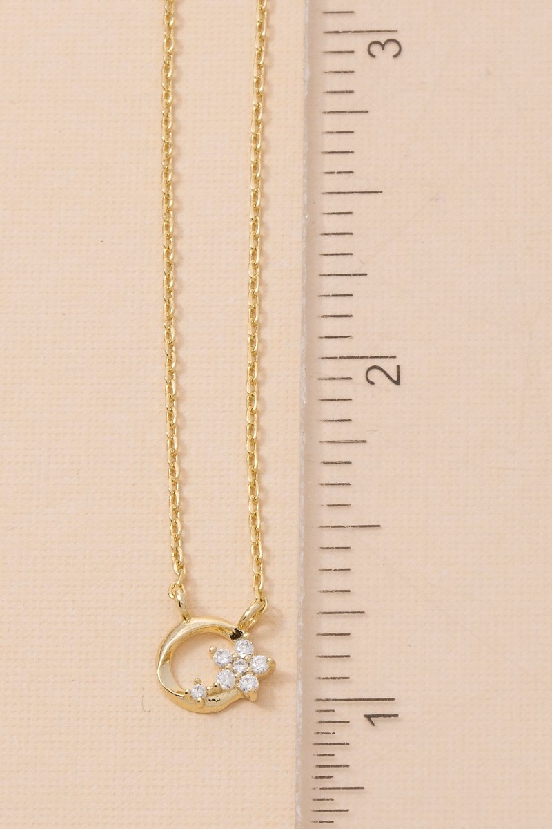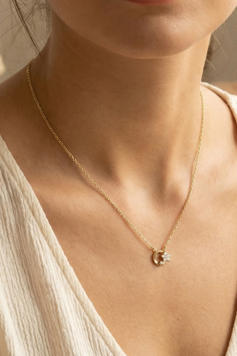 • This necklace brings a unique cz flower circle charm style. Discover the perfect balance of subtlety and flair as this necklace effortlessly completes your look.