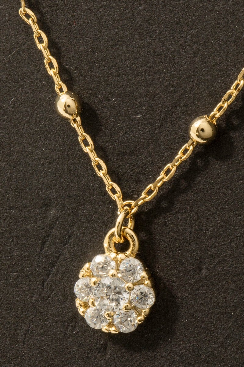Gold Dipped Cz Stud Flower Pendant Necklace