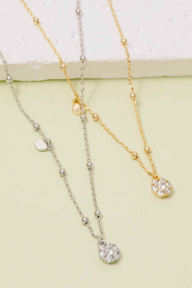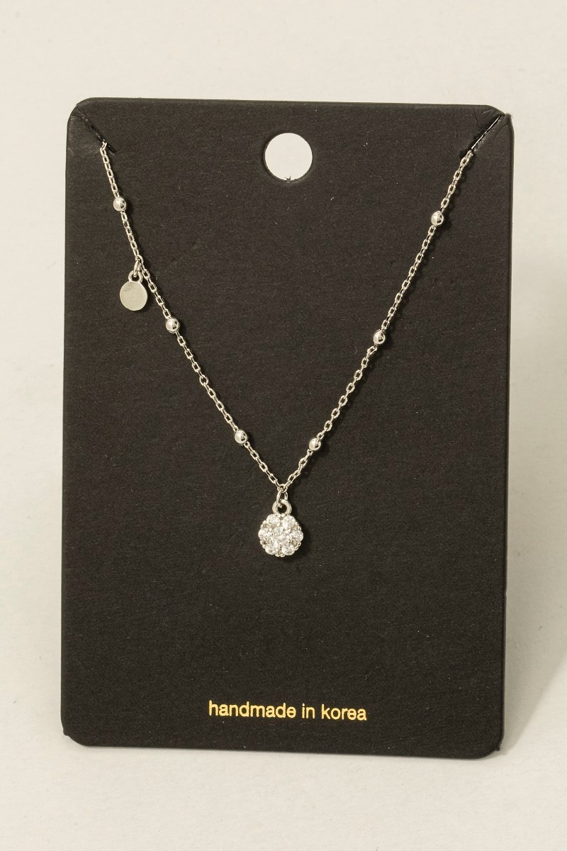 Cz Flower Circle Charm Necklace