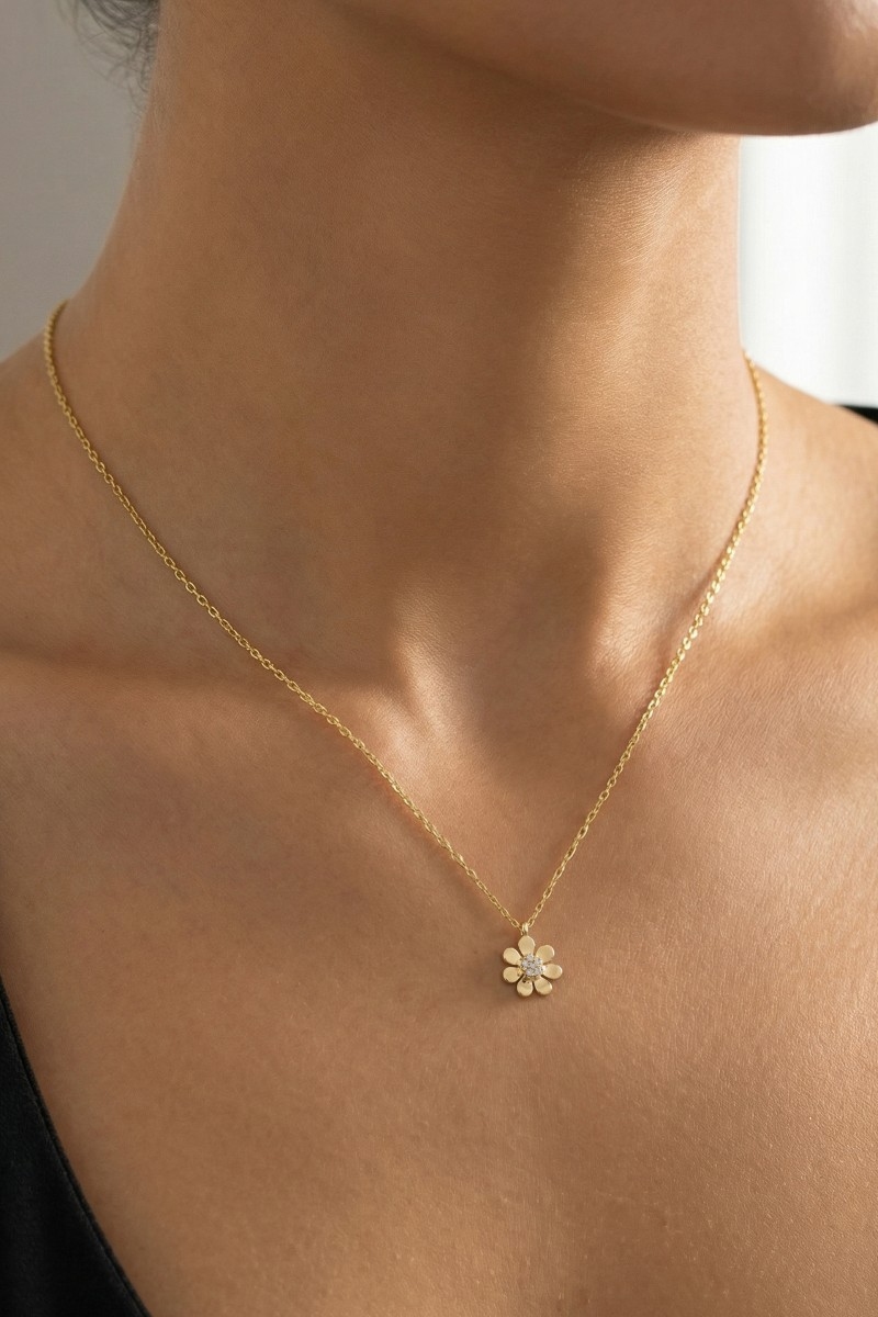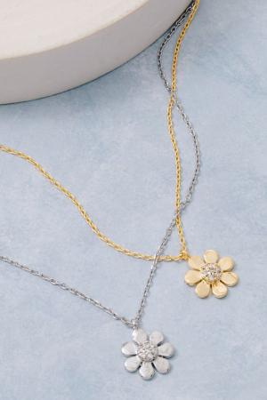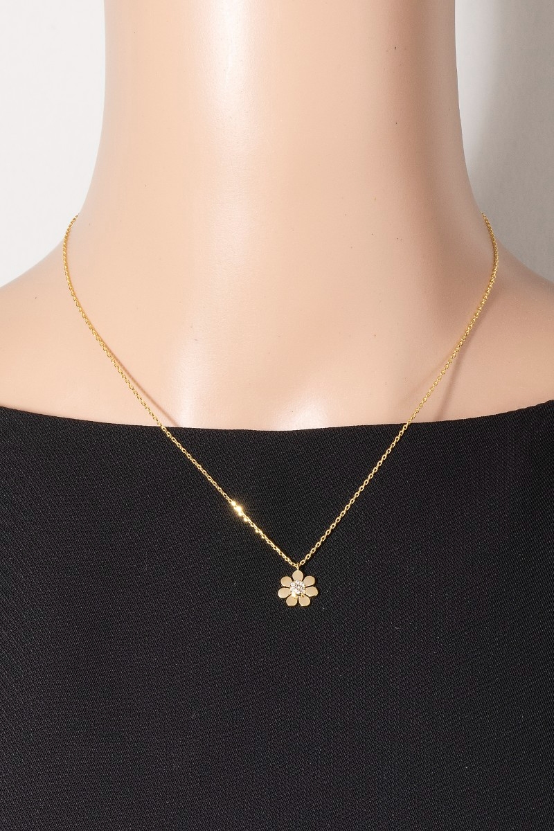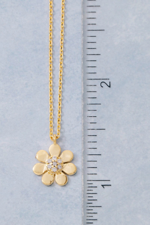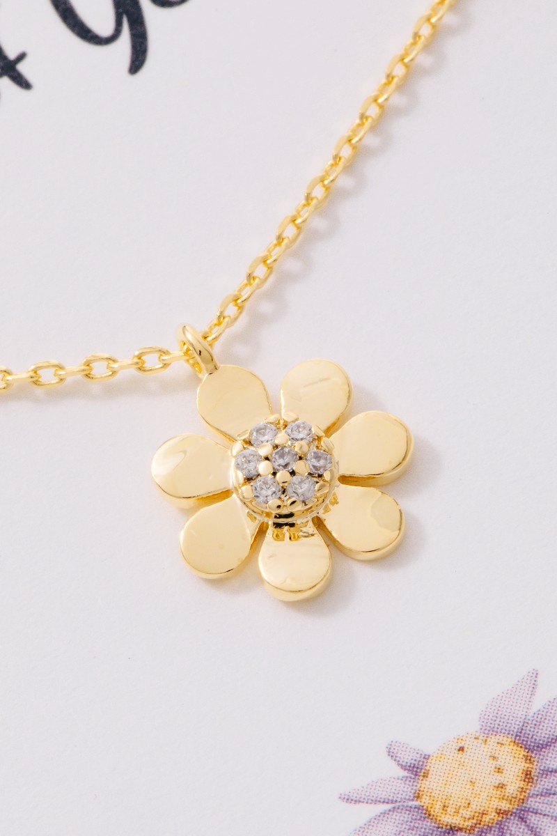 • This necklace features a fashionable gold dipped cubic zirconia flower blossom pendant style. Explore a refined sense of style with this necklace, seamlessly elevating the chic factor of your look.