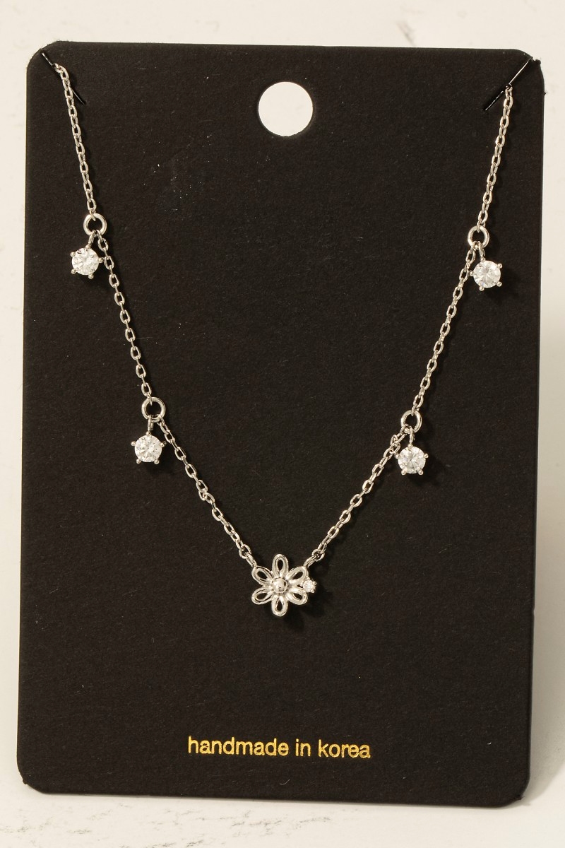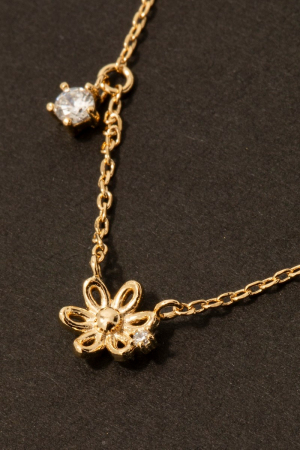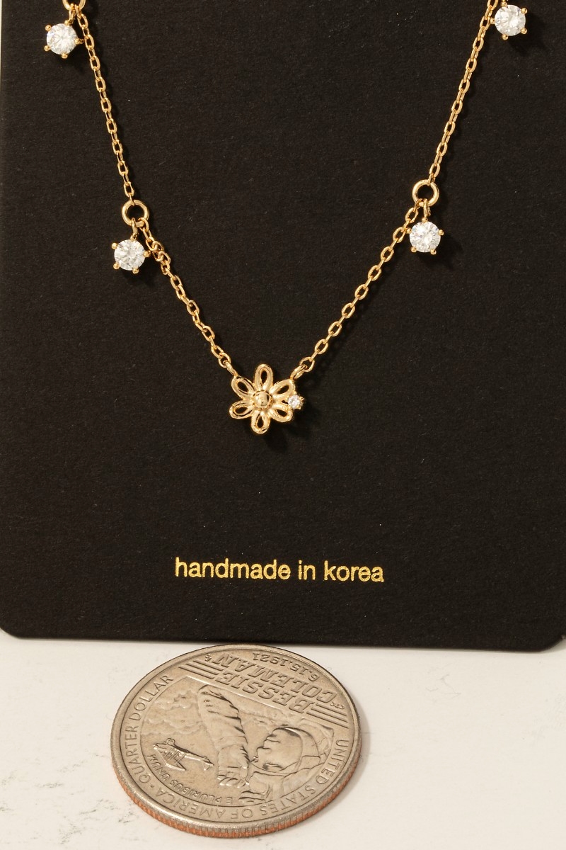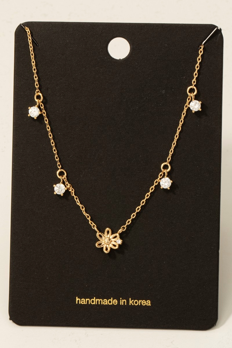 Gold Dipped Dainty Cz Flower Pendant Necklace