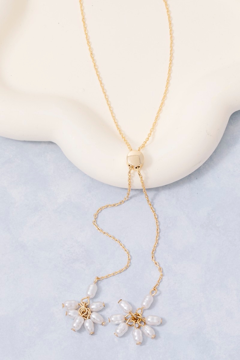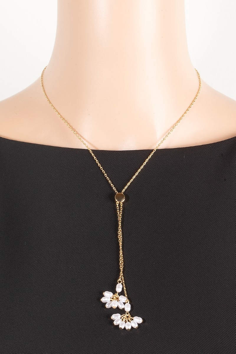 • This chain necklace adds a modern pearl beaded flowers y style. Step into a world of refined taste as this chain necklace effortlessly refines the details of your outfit.