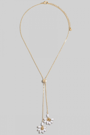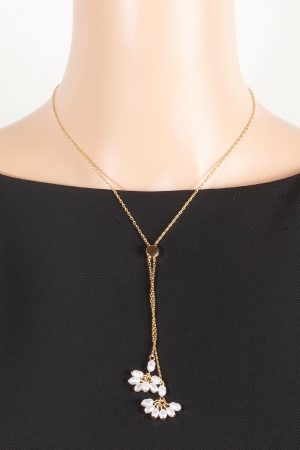 Cz Layered Flower Charm Teardrop Y Chain Necklace