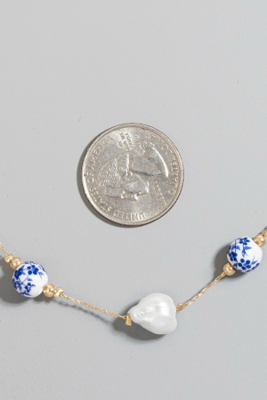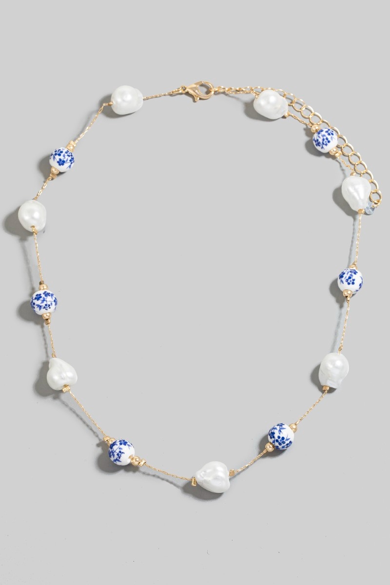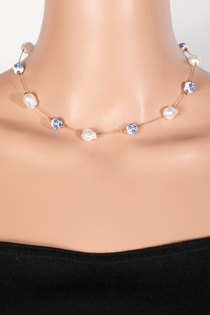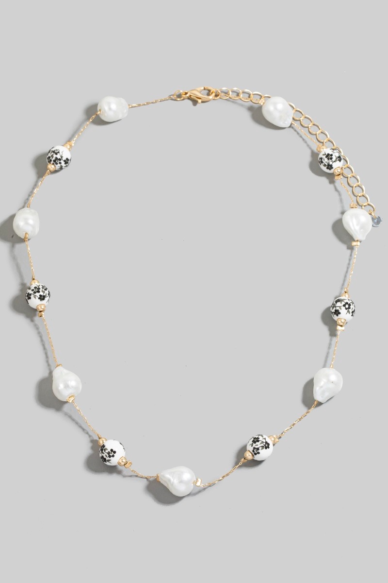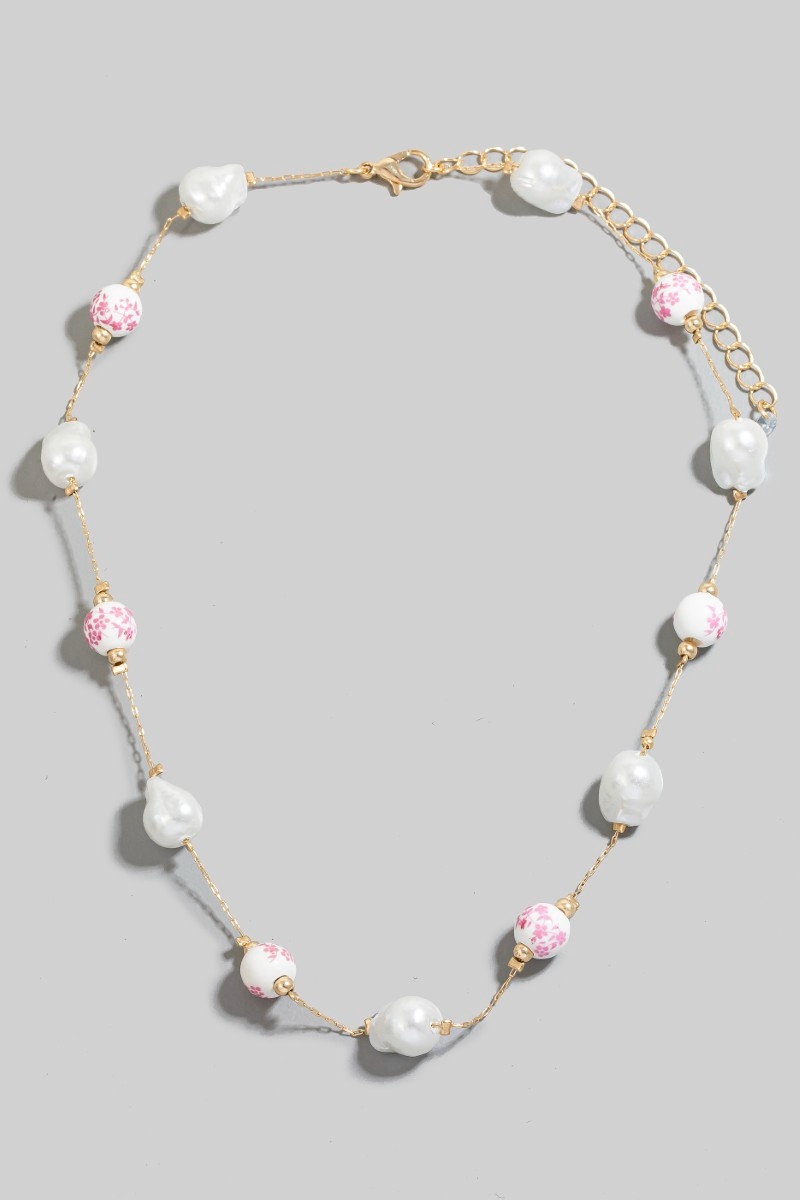 - This chain necklace introduces a stunning pearl and floral ceramic ball beads style. Indulge in the artistry of accessorizing with this unique piece.