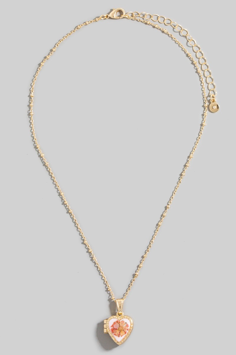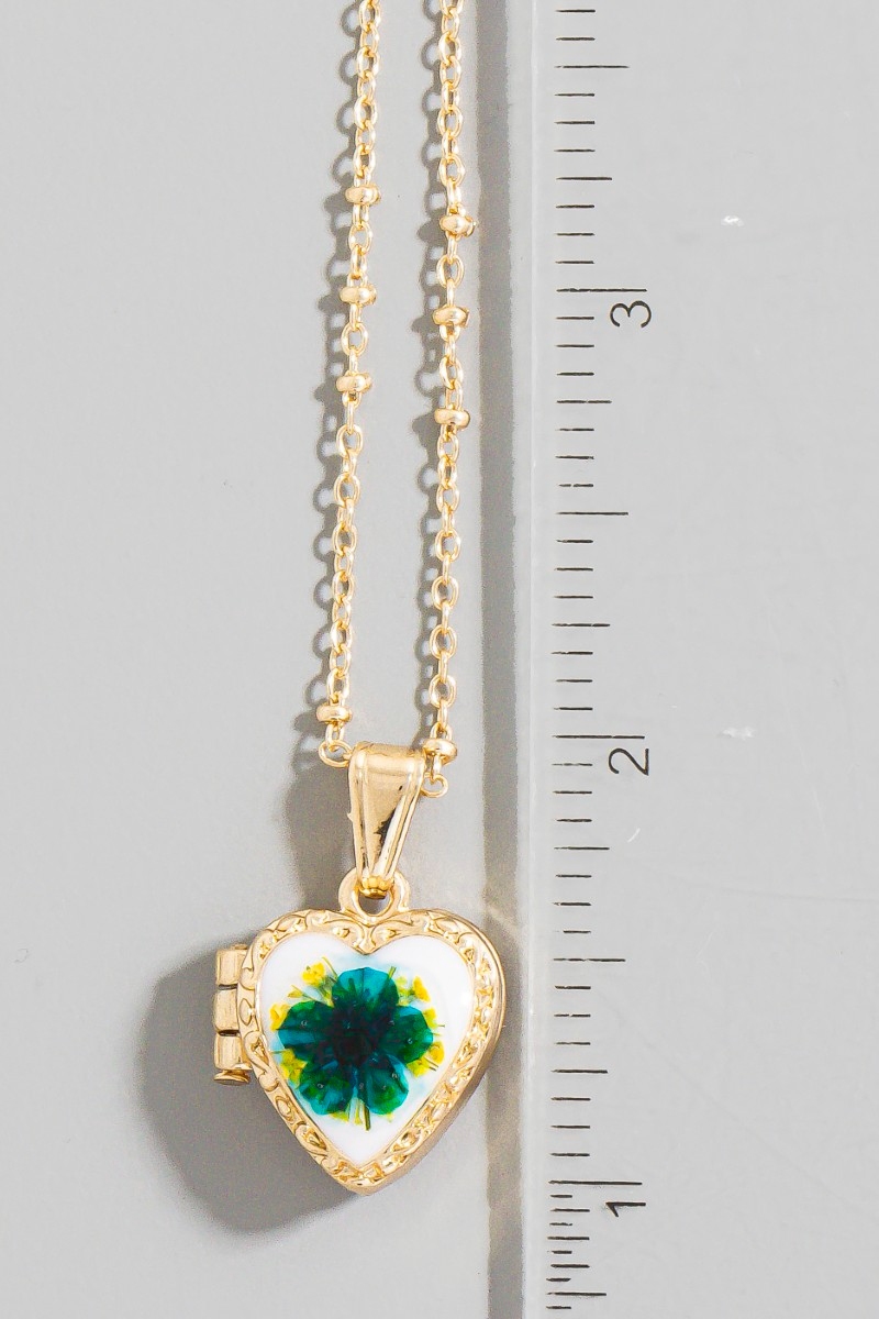 • This pendant necklace introduces a stunning pressed flower heart locket style. Witness the transformative power of accessories as this piece effortlessly redefines your fashion narrative.