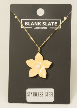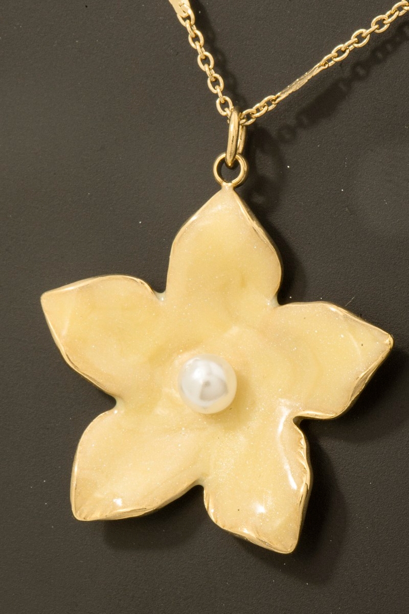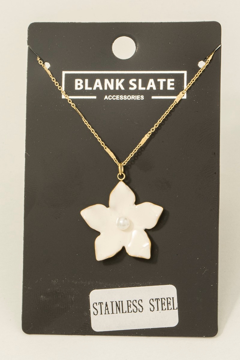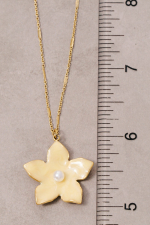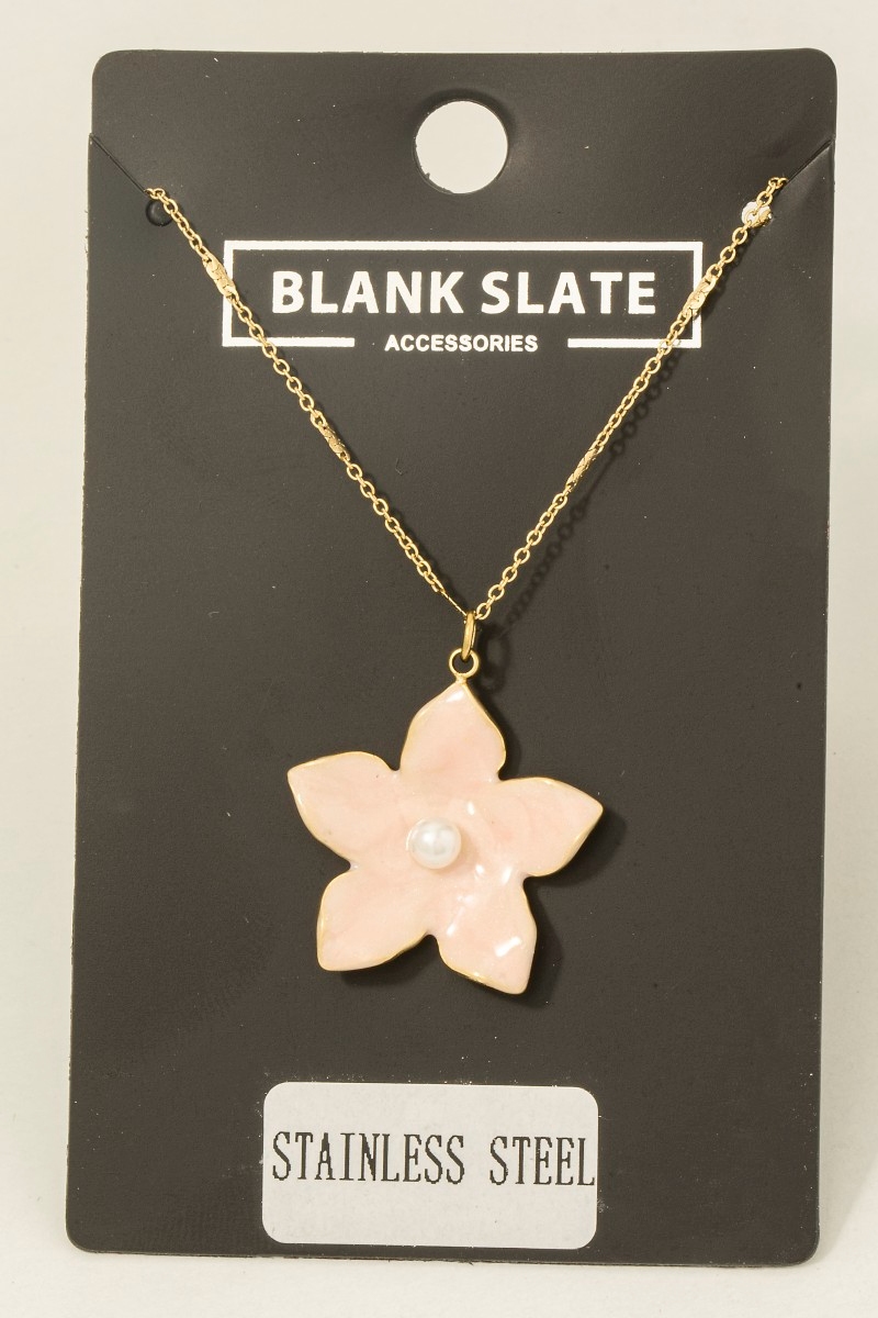 • This necklace showcases a unique stainless steel pearl stud enamel flower pendant style. Indulge in the artistry of accessorizing with this unique piece.