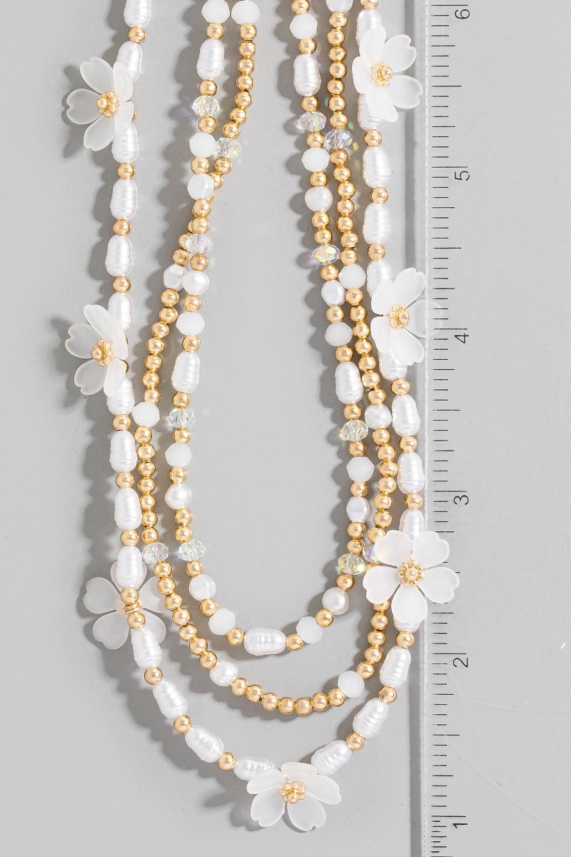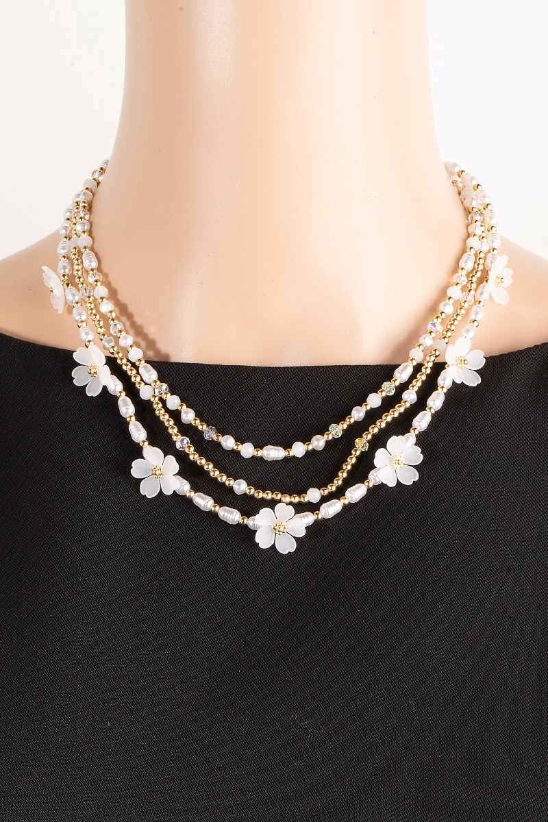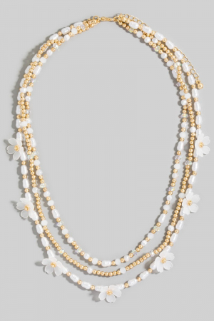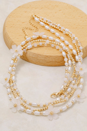 • This necklace displays a fashionable station flower charms layered beaded style. Embark on a journey of sartorial refinement as this necklace effortlessly complements your fashion sense.
