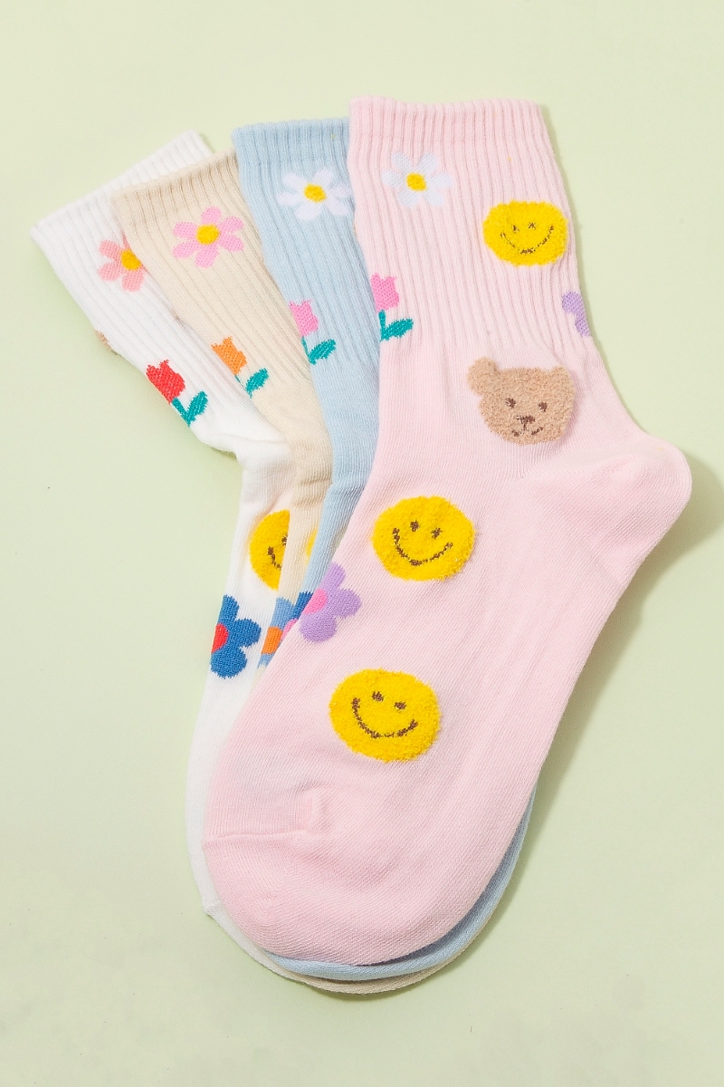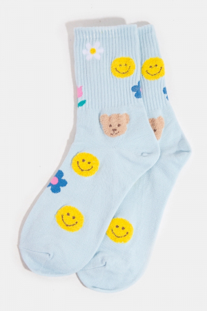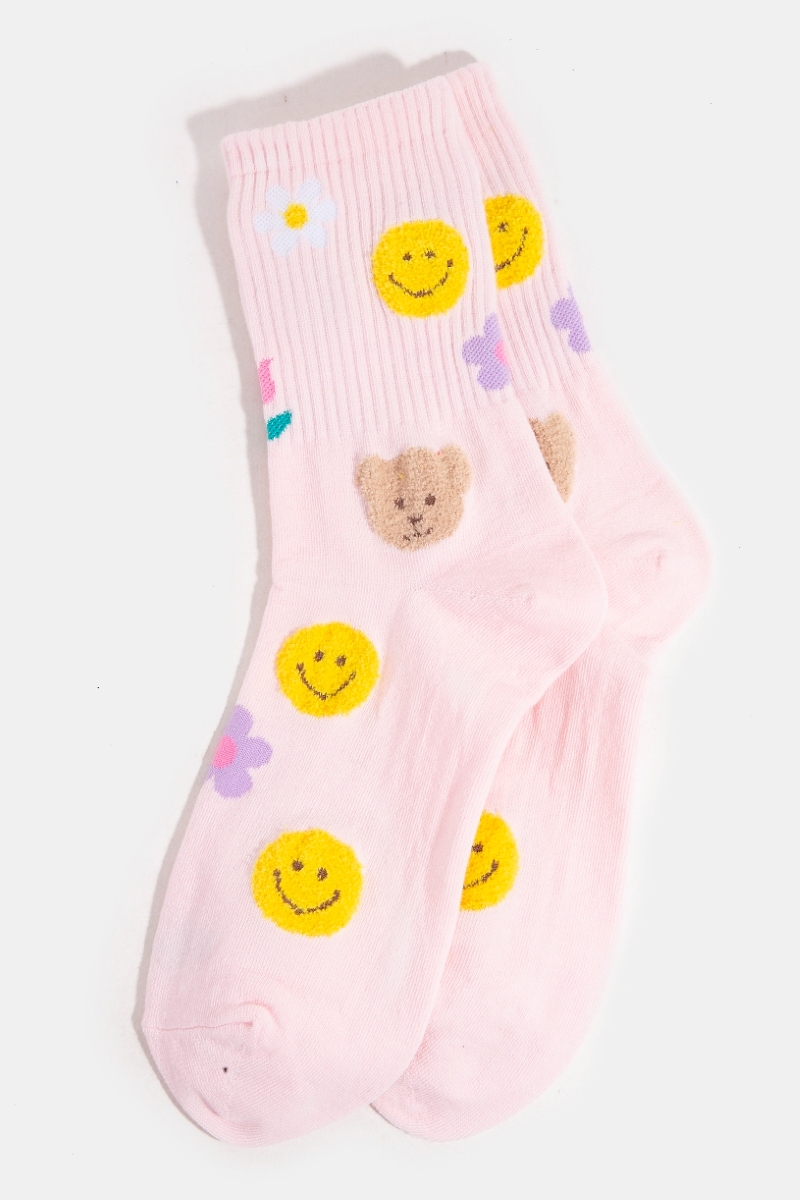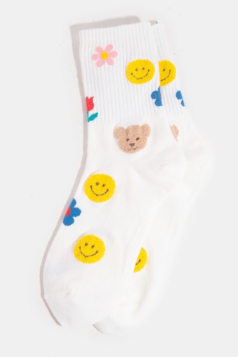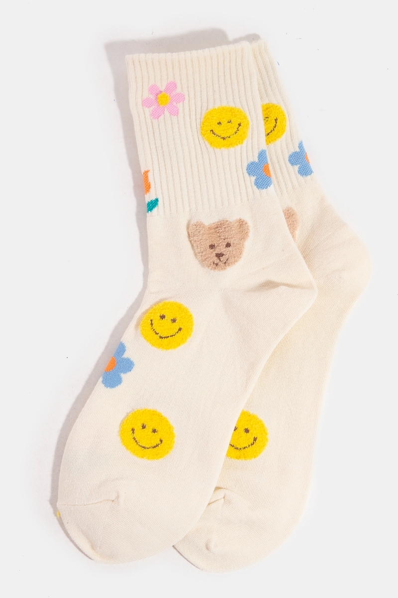 - This pair of socks introduces a stunning floral teddy bear and smiley face socks style. Explore a blend of classic charm and contemporary flair.