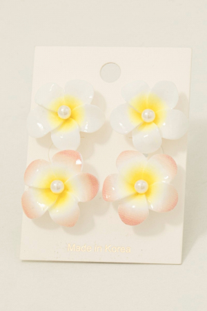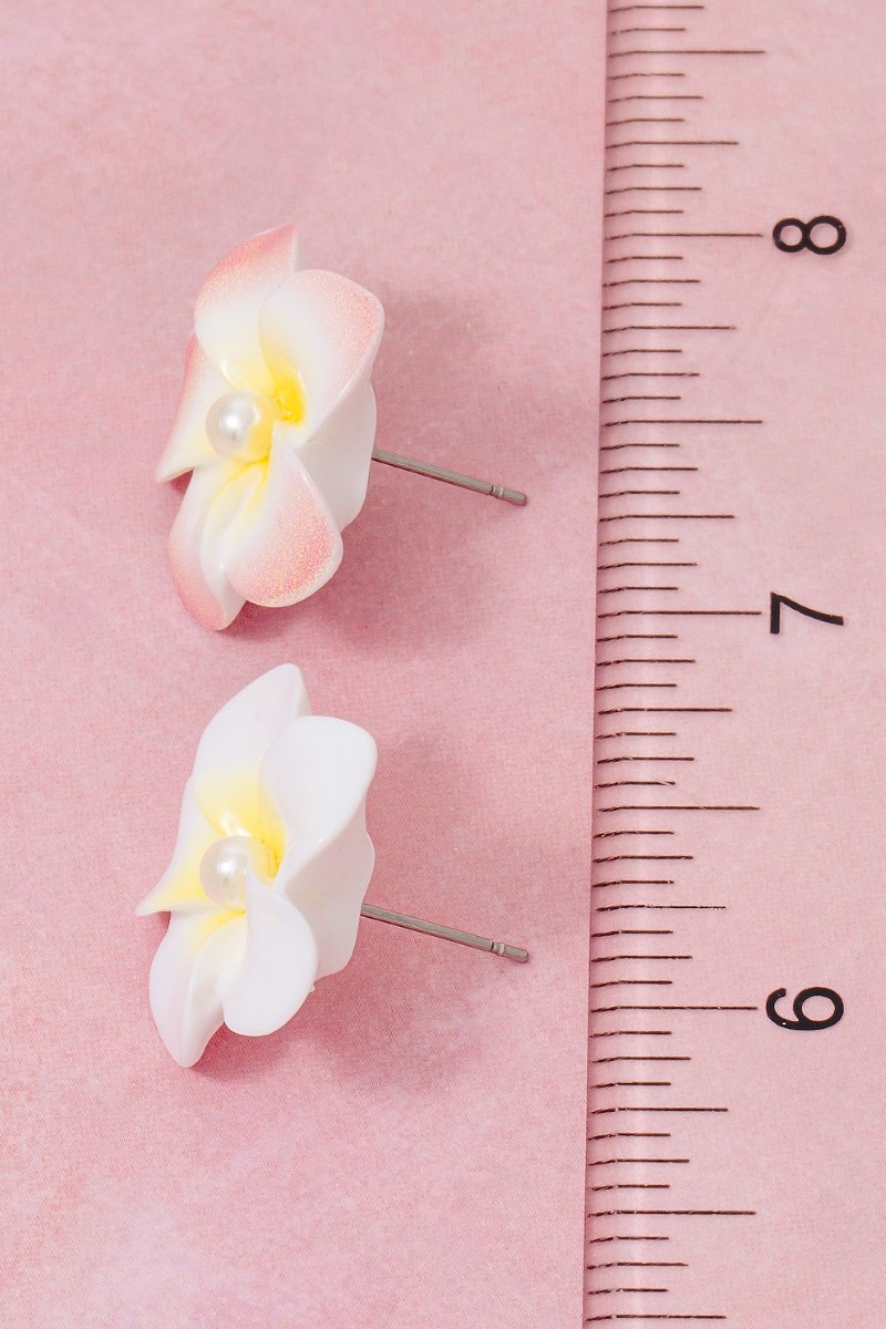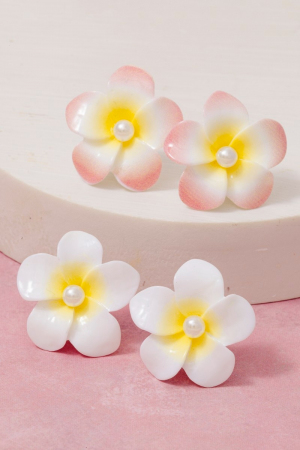 - This pair of stud earrings introduces a stunning pearl studded acrylic flower style. Unveil a new dimension of sophistication as this pair of stud earrings effortlessly enhances the elegance of your ensemble.