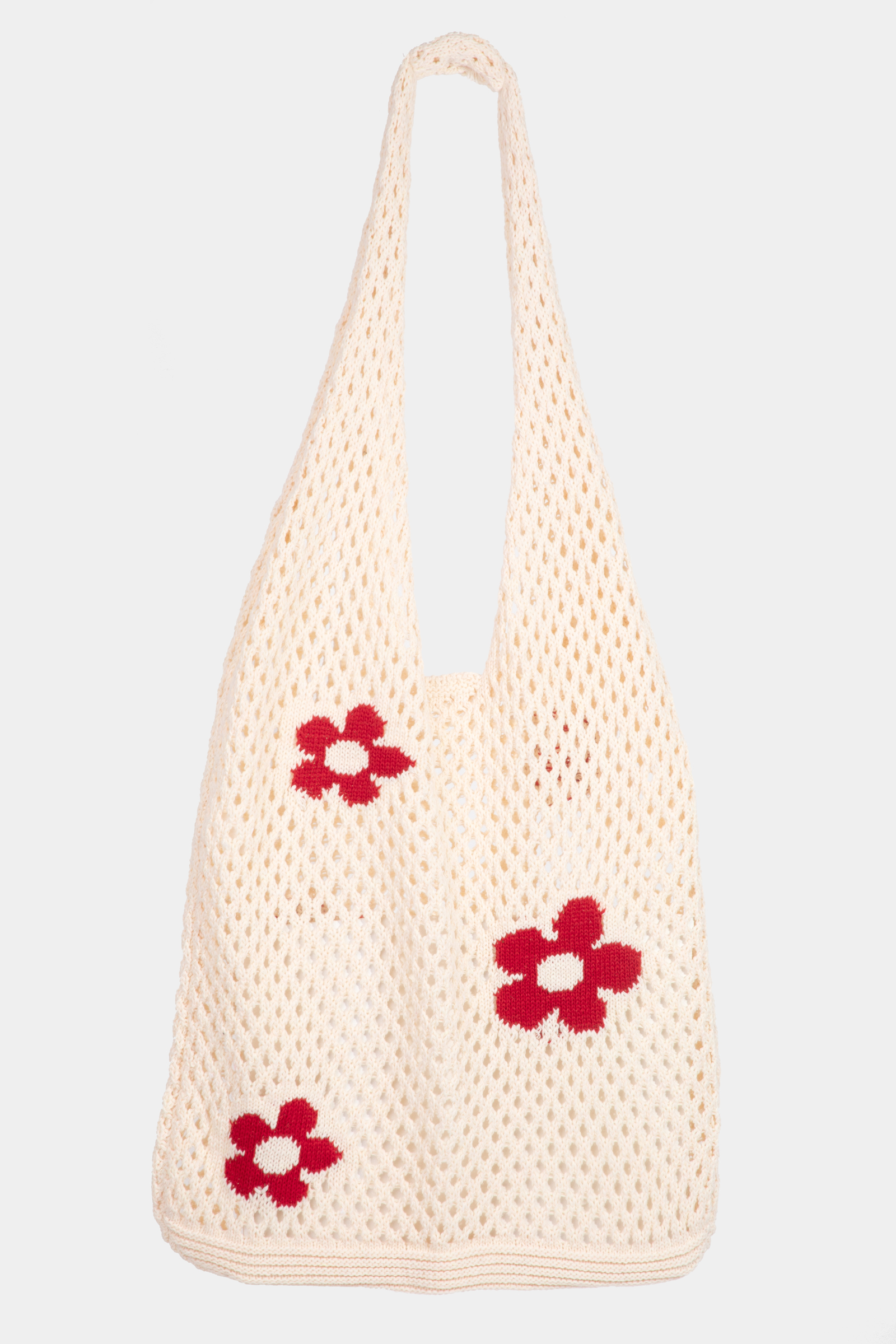 • This shoulder bag introduces a stunning flower knitted style. Explore a refined sense of style with this accessory, seamlessly elevating the chic factor of your look.