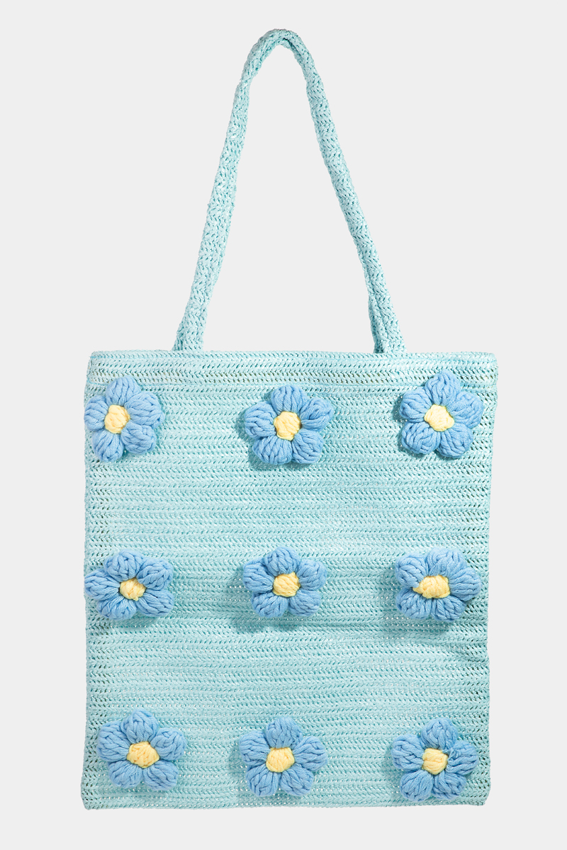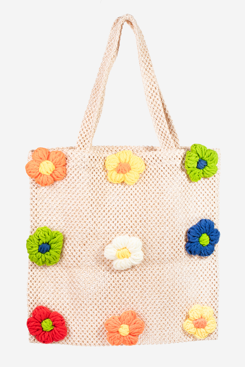 - This tote bag showcases a unique knitted flower style. Experience refined sophistication with this understated yet stylish piece.