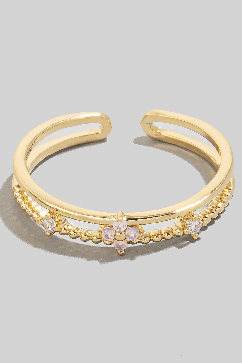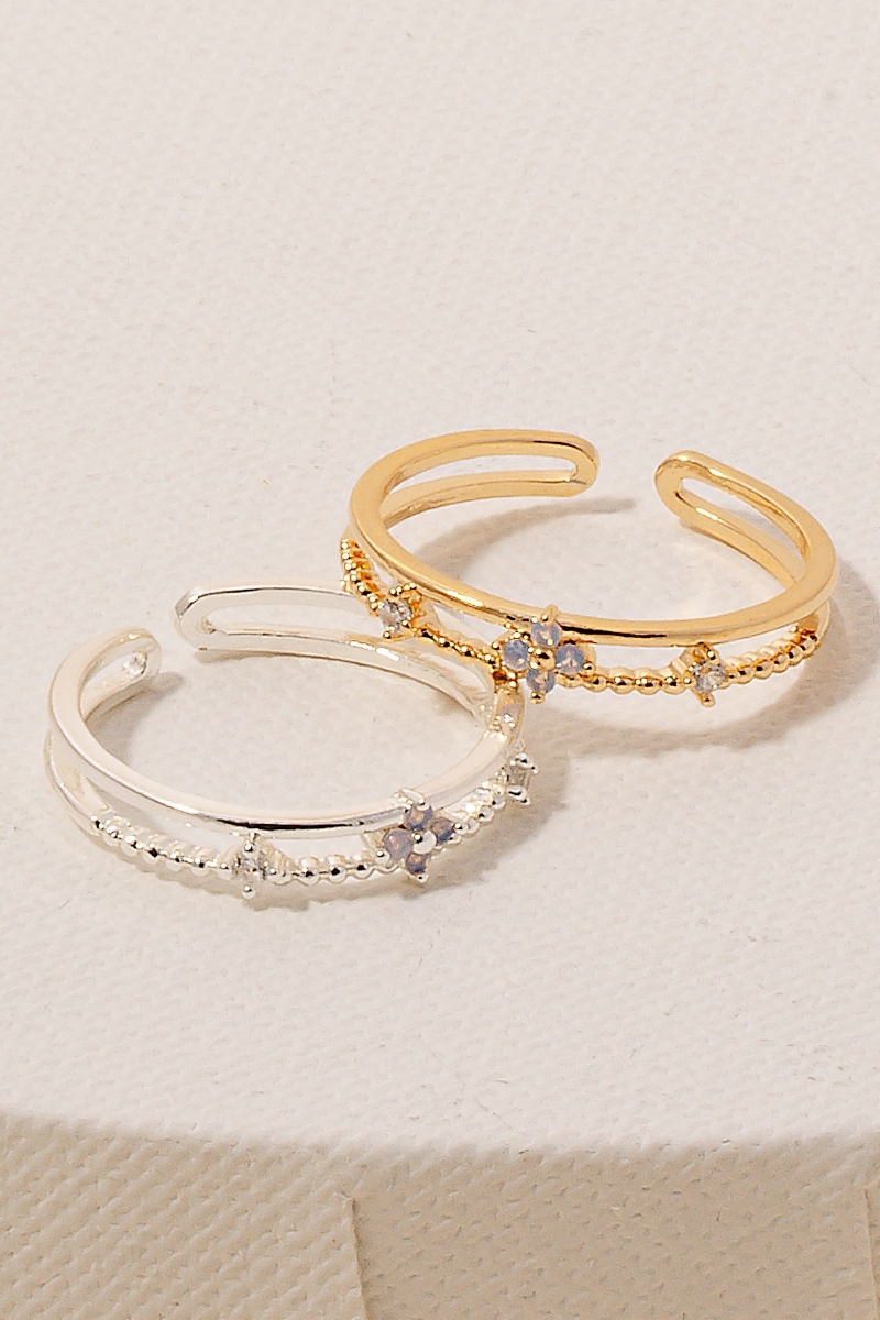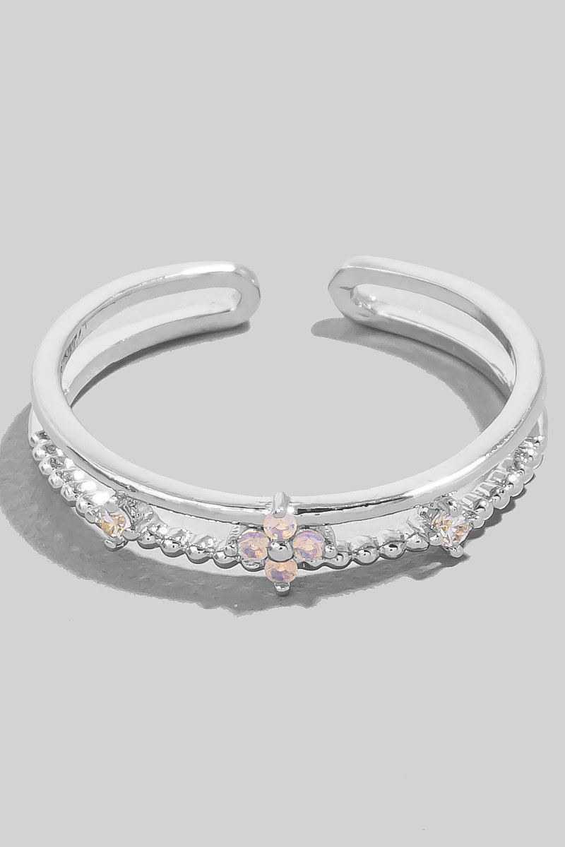 • This ring showcases a timeless cz flower mix textured layered open band style. Redefine your look effortlessly with this standout, on-trend piece.