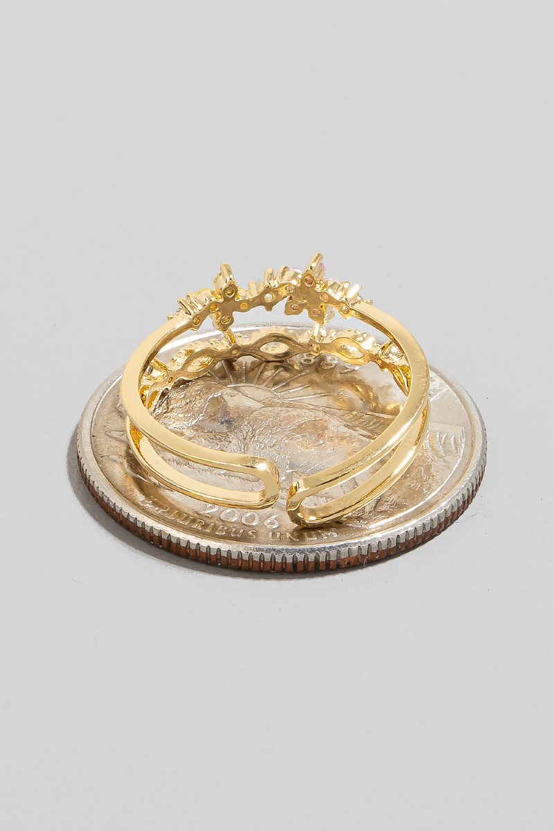 Gold Dipped Cz Cluster & Butterfly Double Band Ring