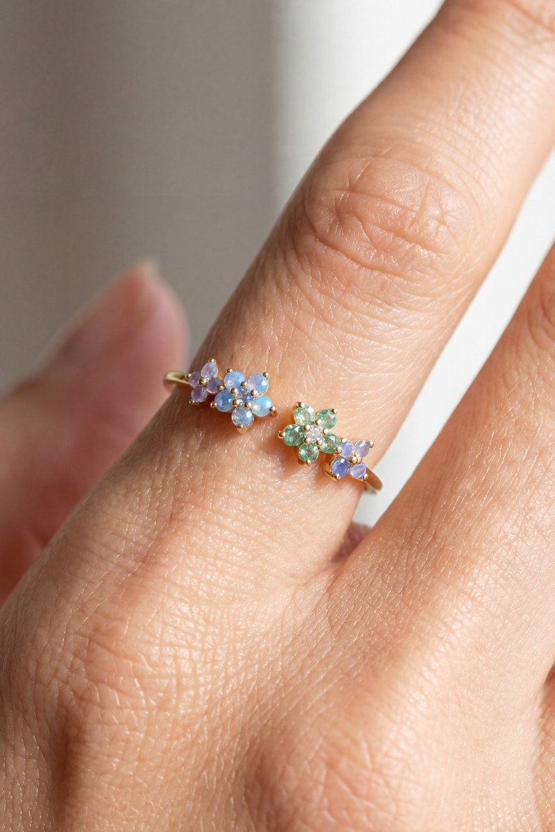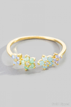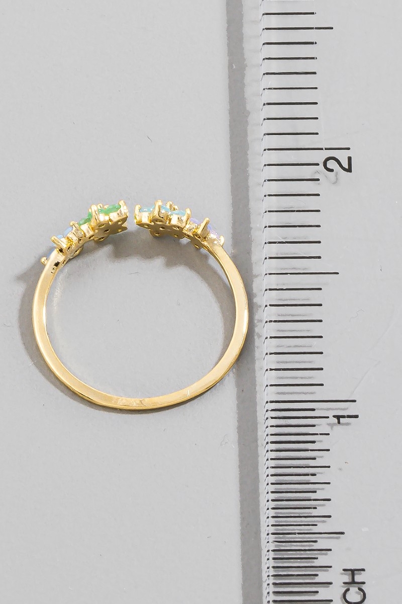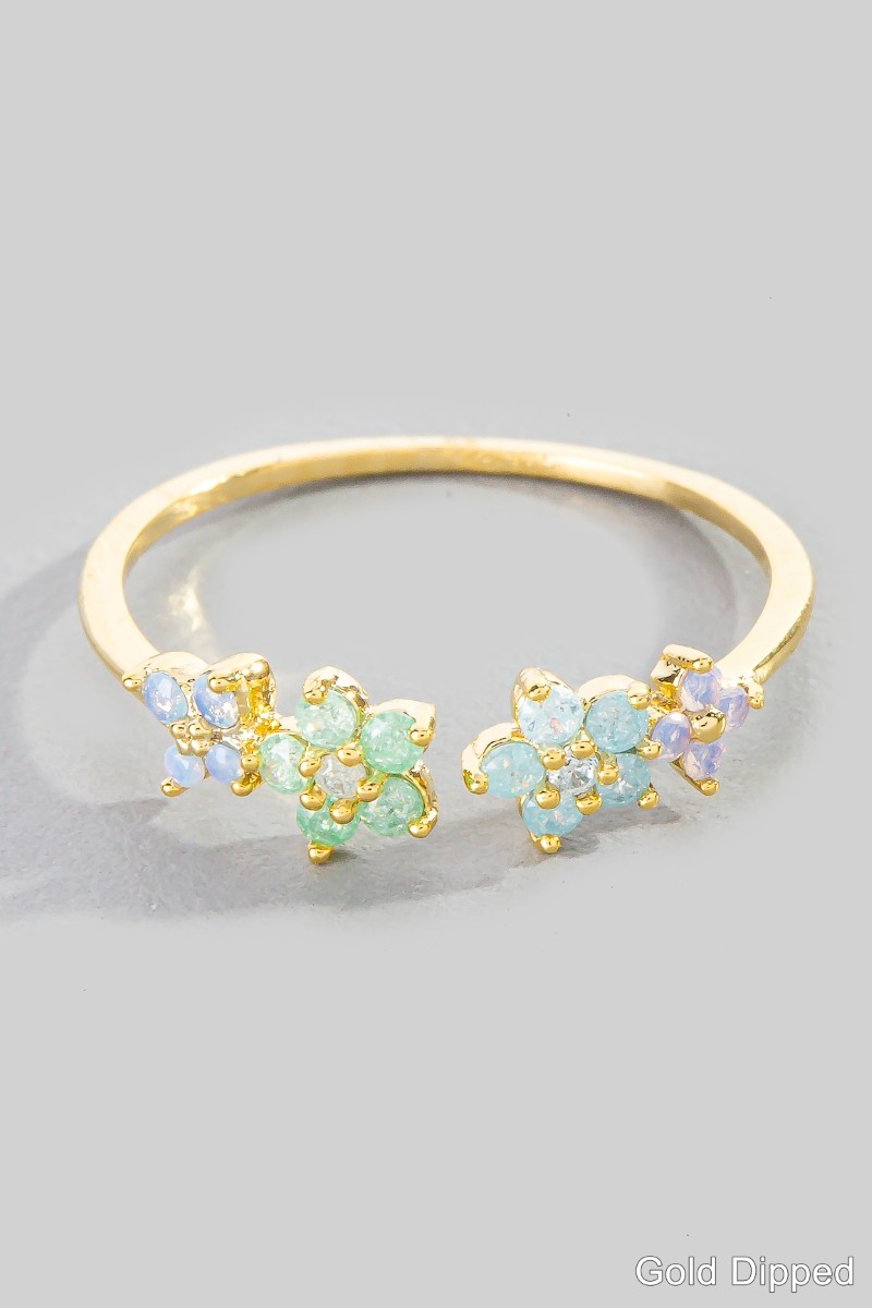 - This ring displays a fashionable gold dipped colorful cubic zirconia flower open style. Step into a world of refined taste as this ring effortlessly refines the details of your outfit.