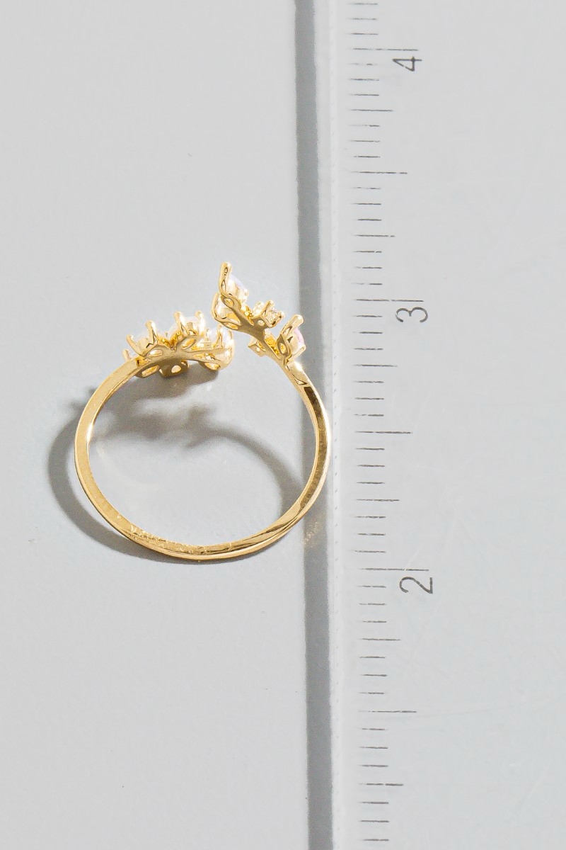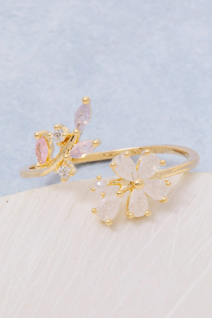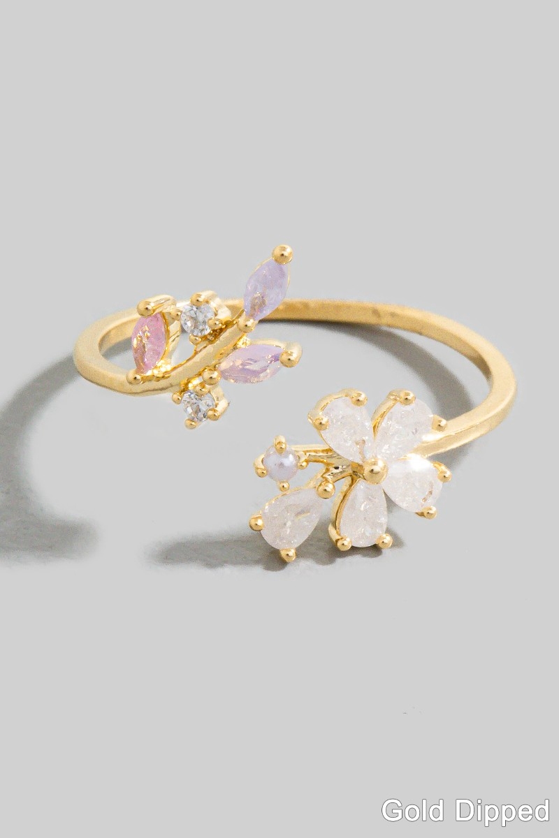 - This ring adds a modern gold dipped cubic zirconia flower leaf open style. Discover the perfect balance of subtlety and flair as this ring effortlessly completes your look.