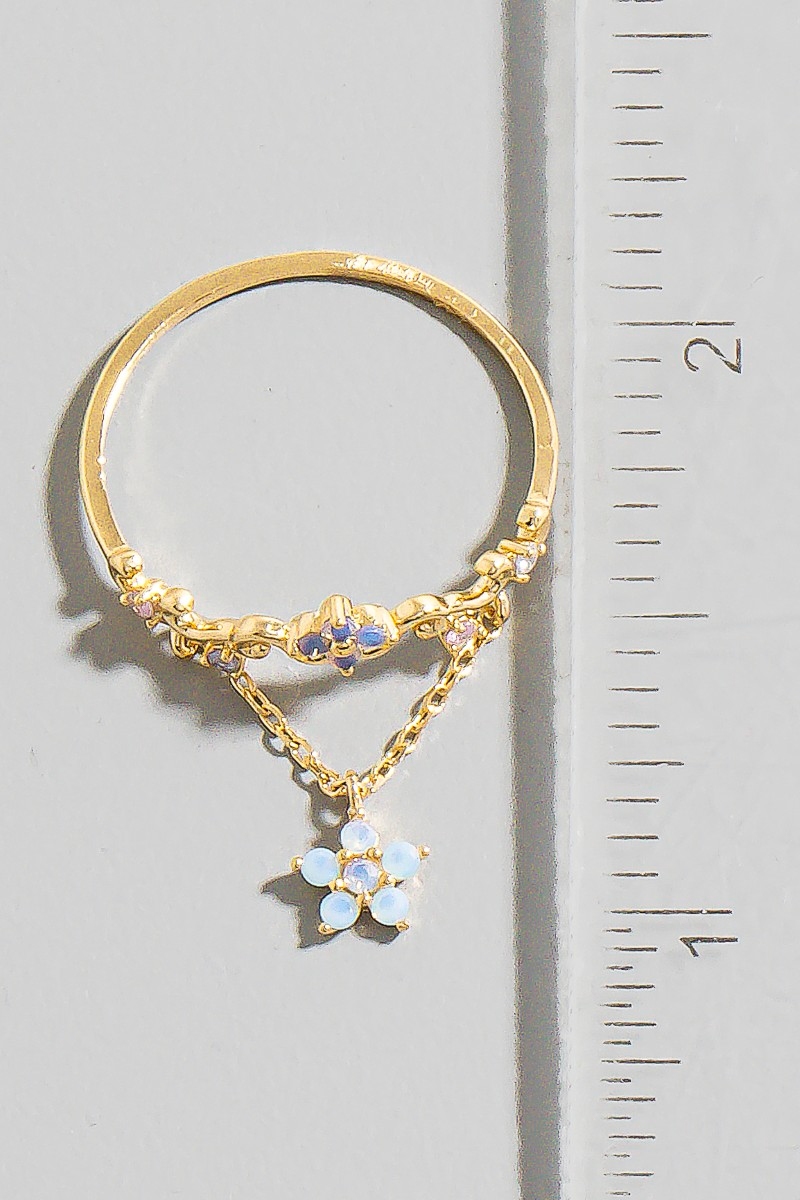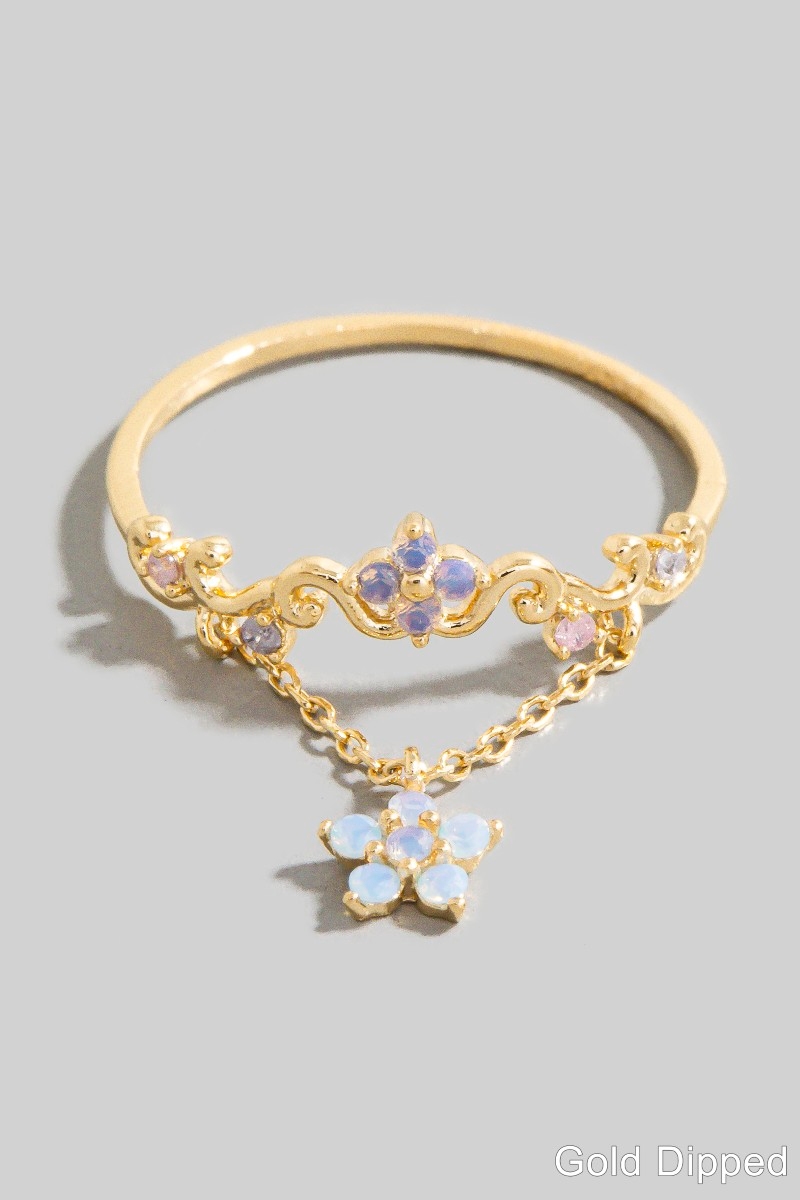- This ring features a fashionable gold dipped cubic zirconia flower with chain style. Redefine your look effortlessly with this standout, on-trend piece.