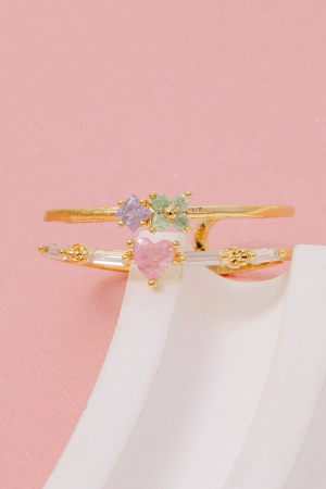 - This ring brings a unique gold dipped cubic zirconia heart and flower style. Discover the perfect balance of subtlety and flair as this ring effortlessly completes your look.