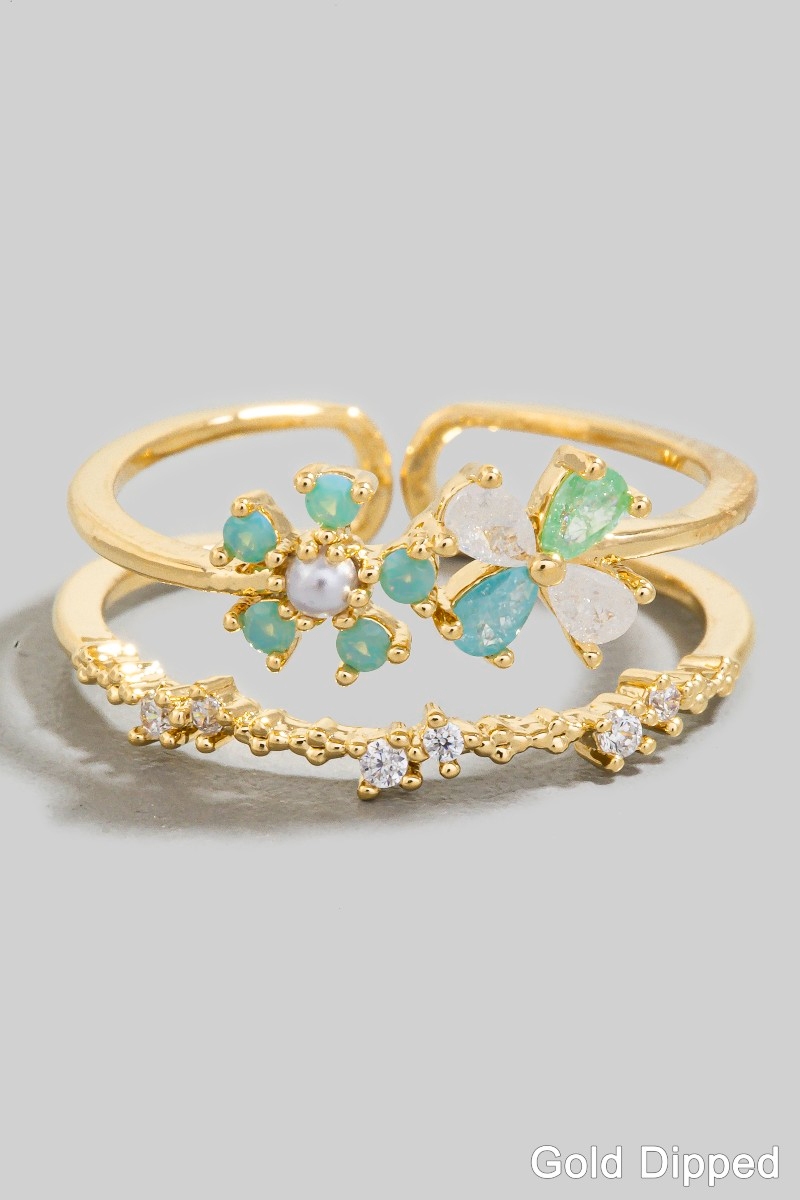 Gold Dipped Cz Flower Cluster Double Band Ring