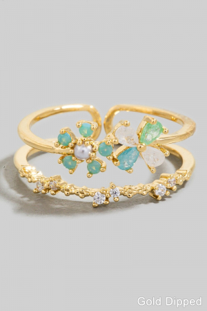 Gold Dipped Cz Cluster & Butterfly Double Band Ring