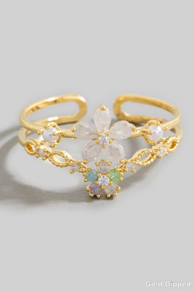 - This ring brings a unique gold dipped flower cubic zirconia style. Unveil modern elegance with this subtly intricate ring.
