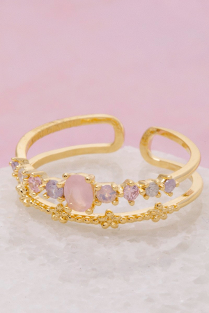 - This ring features a fashionable two row cubic zirconia studded gold dipped style. Celebrate the art of accessorizing with this piece that effortlessly encapsulates modern trends.