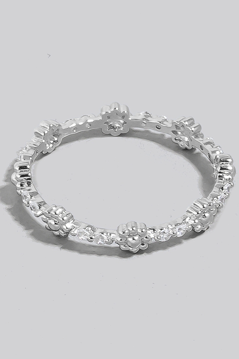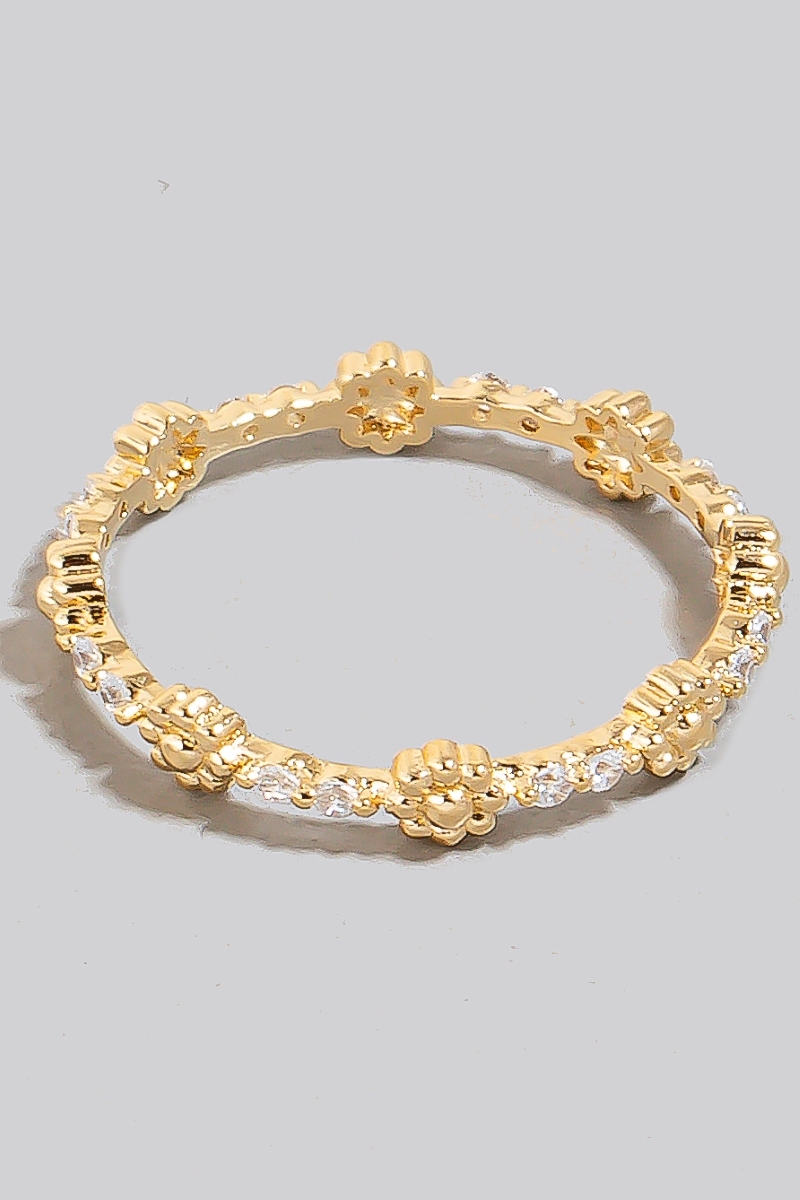 • This ring brings a unique metallic flowers and cubic zirconia studs band style. Embark on a journey of sartorial refinement as this ring effortlessly complements your fashion sense.