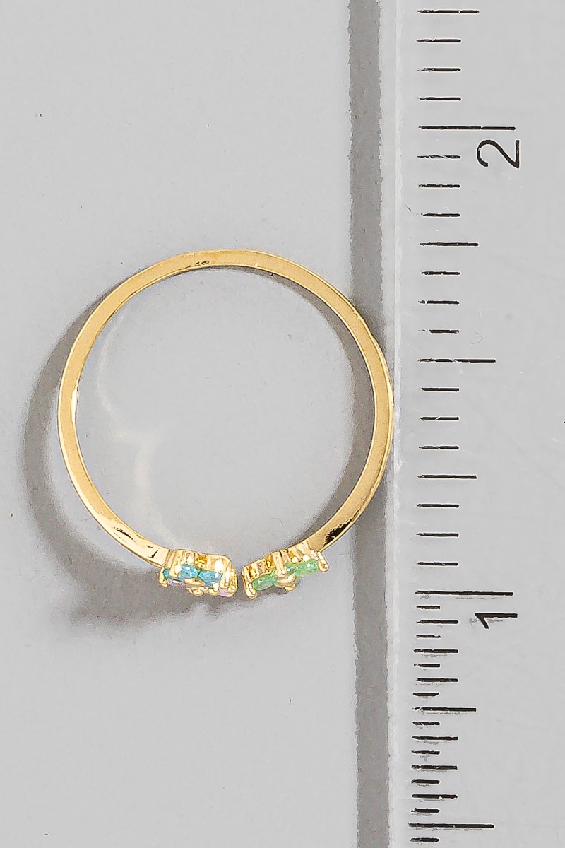 Gold Dipped Cz Cluster & Butterfly Double Band Ring