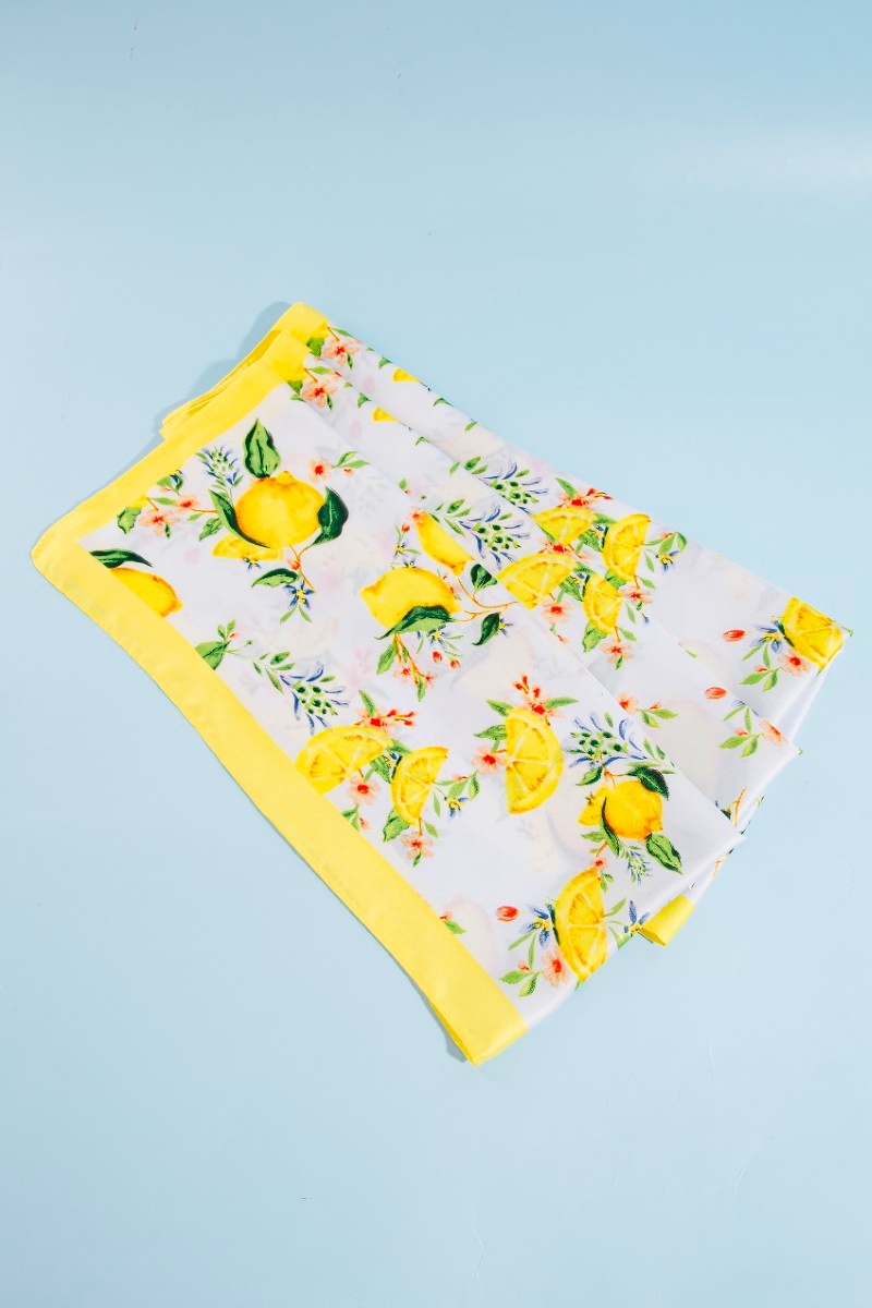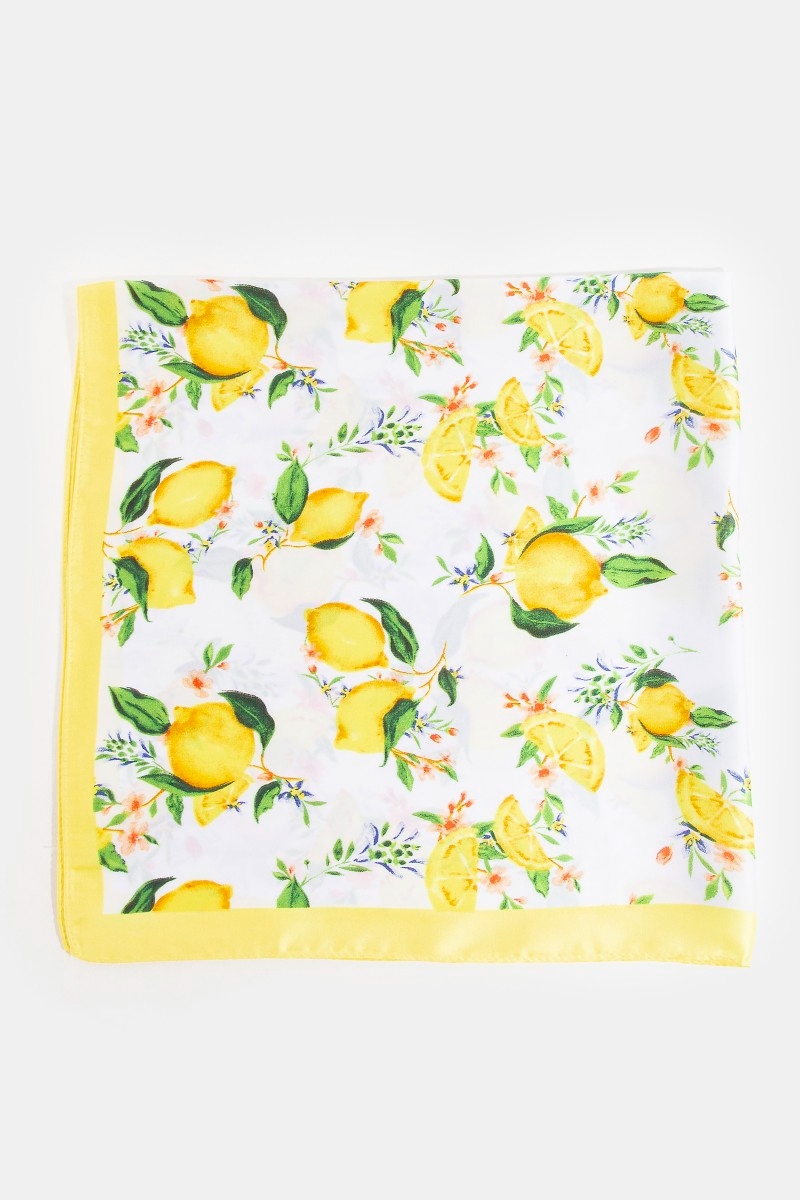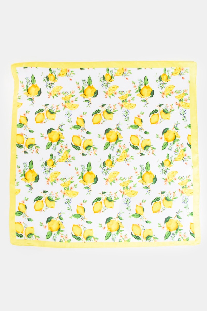 Flower And Lemons Print Square Bandana Scarf