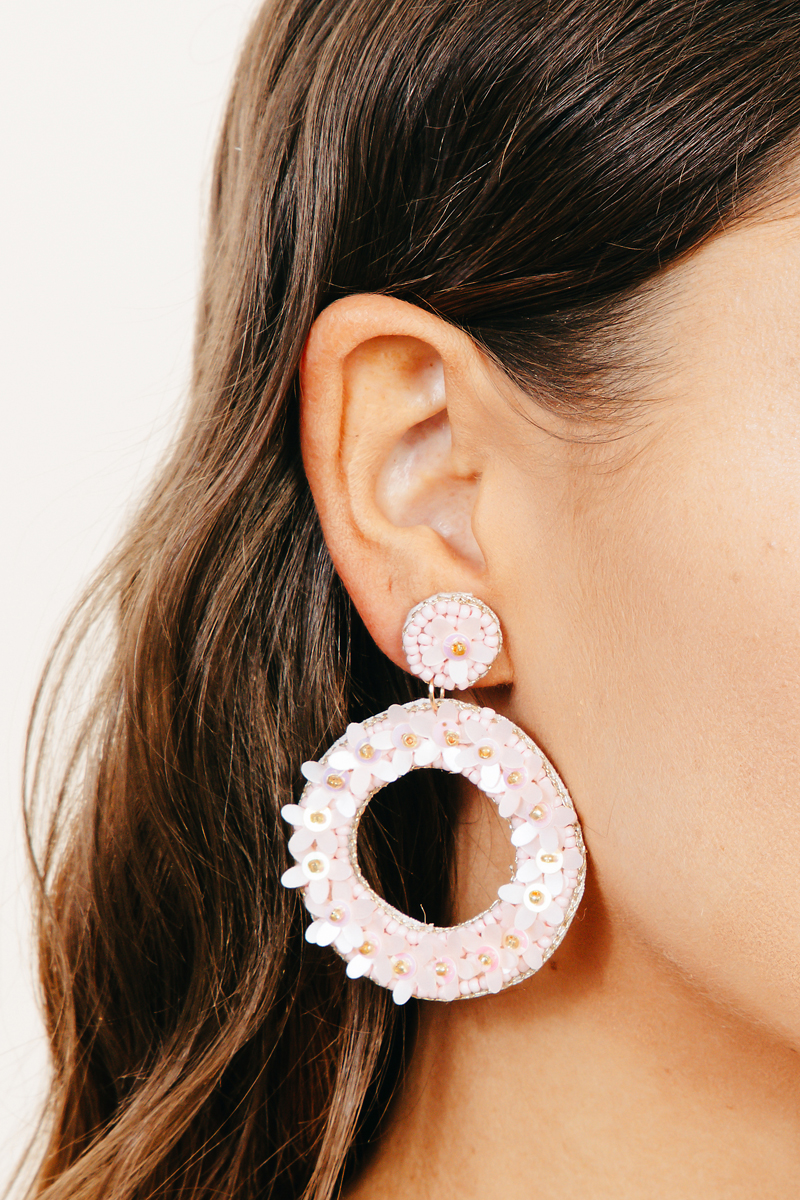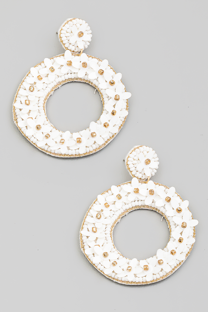 White Resin Flower & Bead Drop Earrings