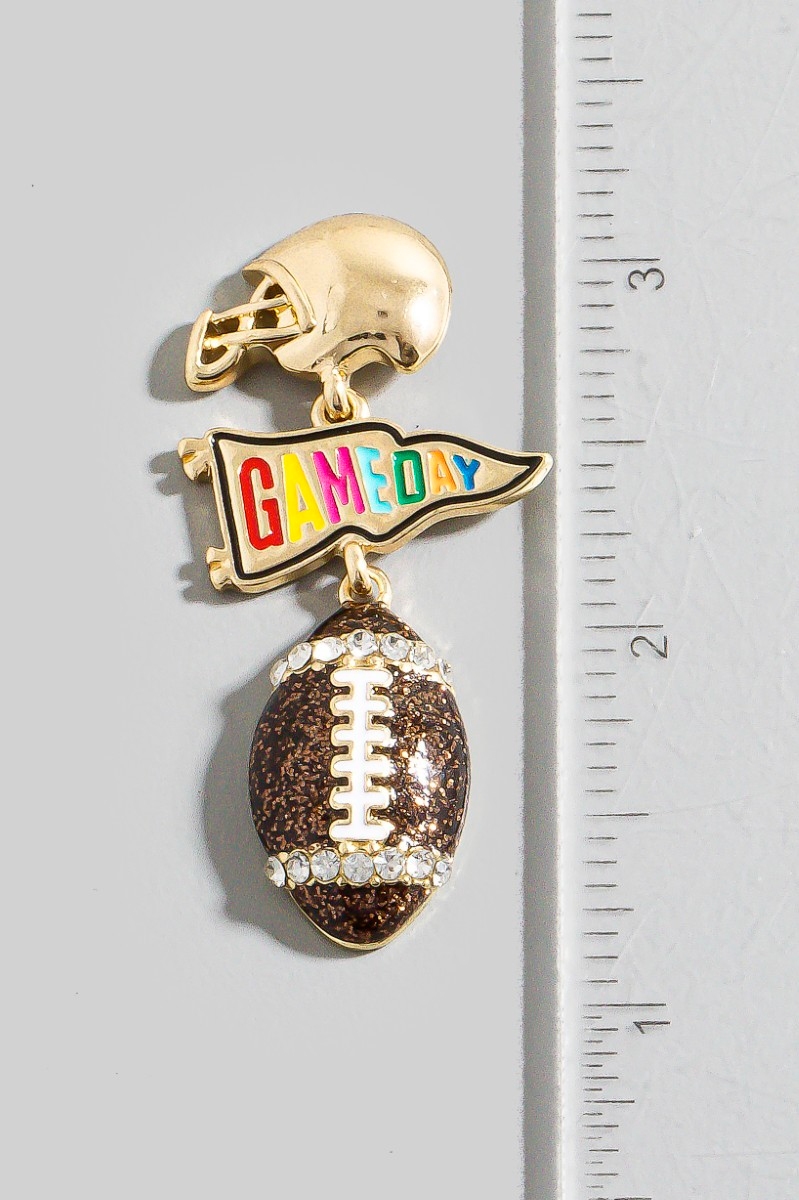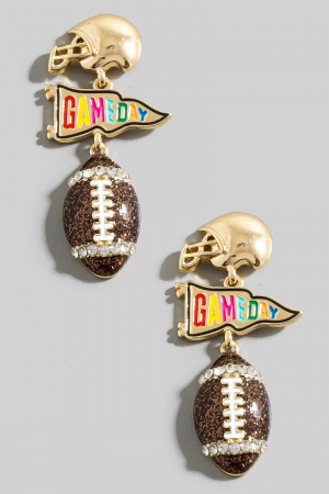 - This pair of dangle earrings showcases a unique football game day theme tiered style. Savor the allure of detailed craftsmanship in this exquisite pair of dangle earrings.