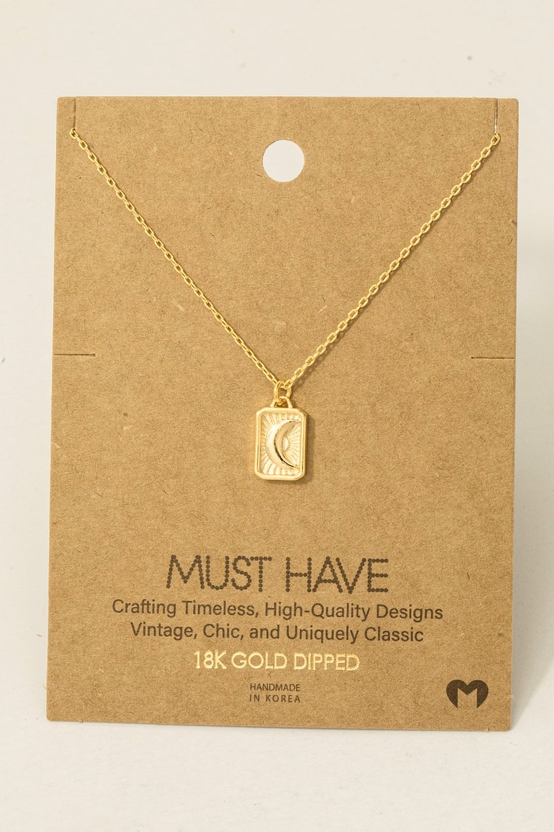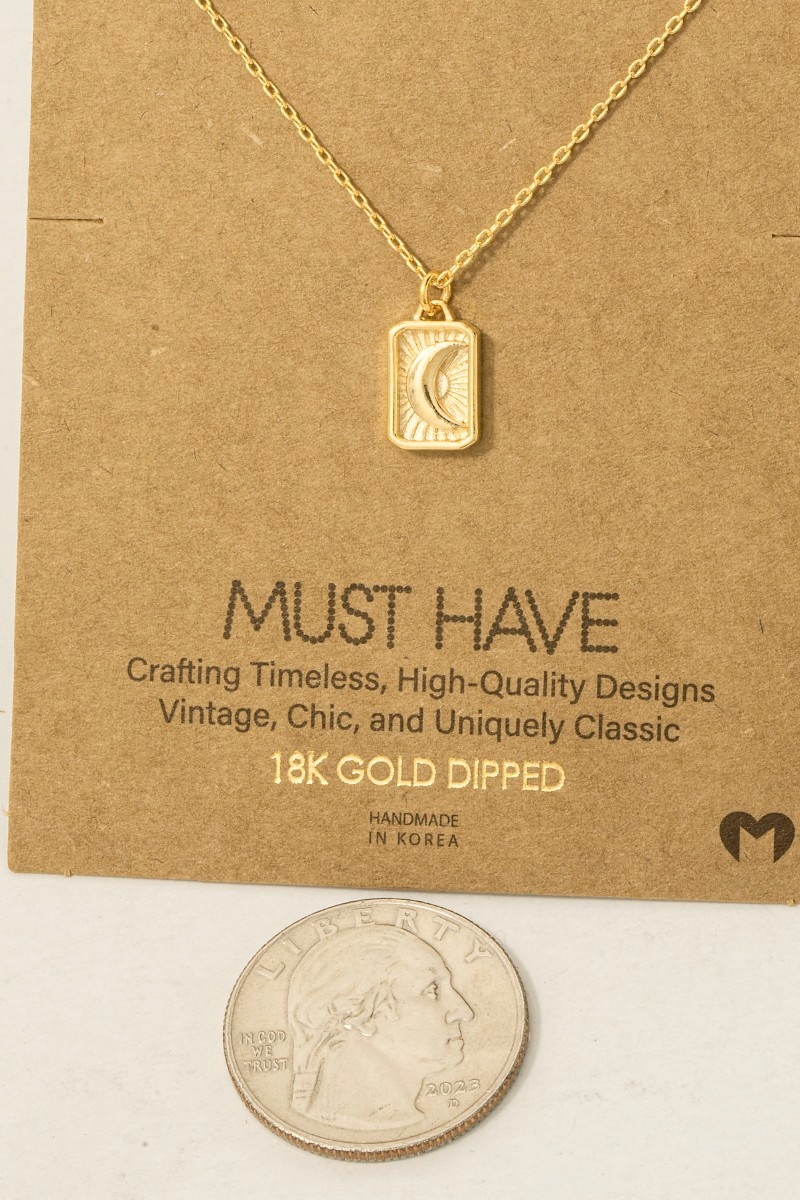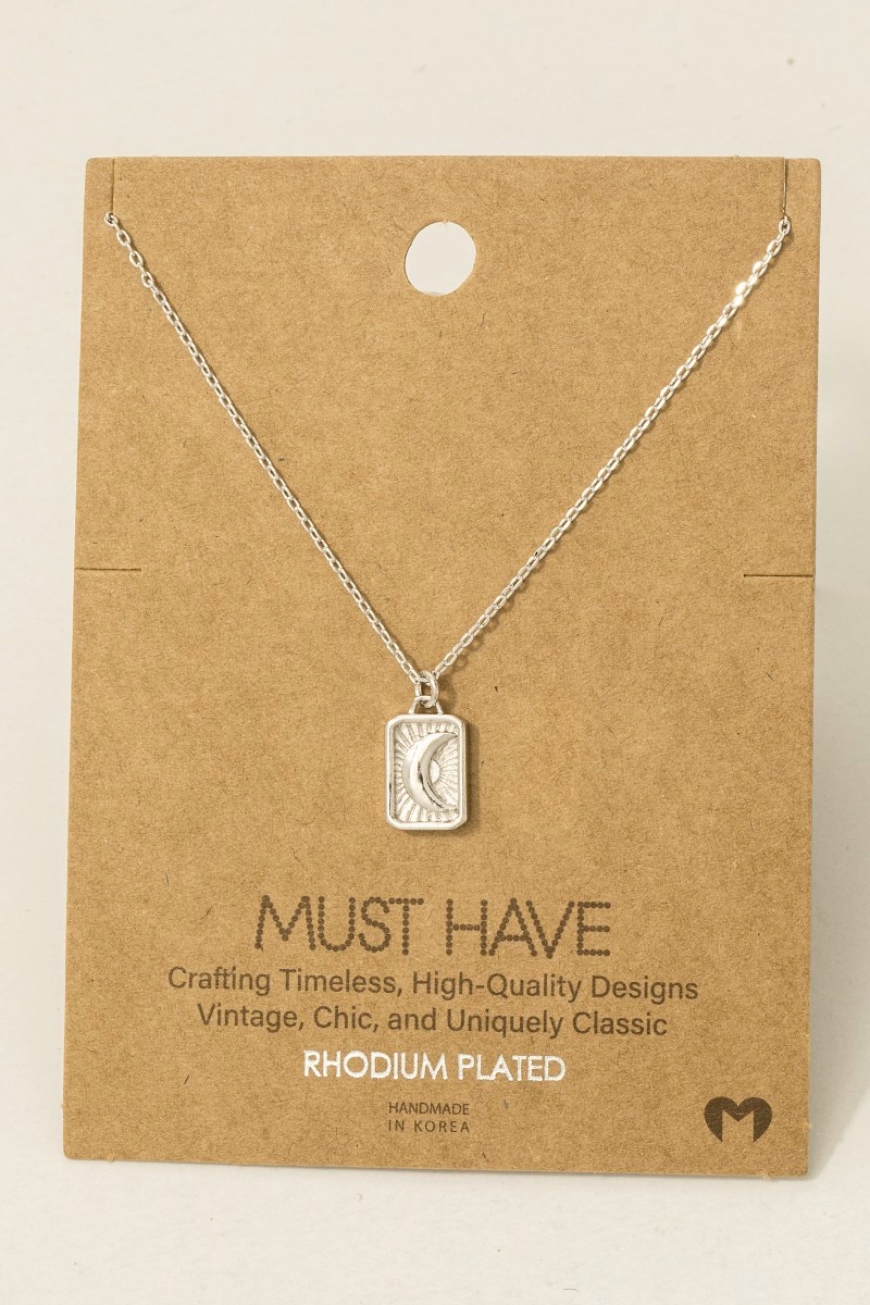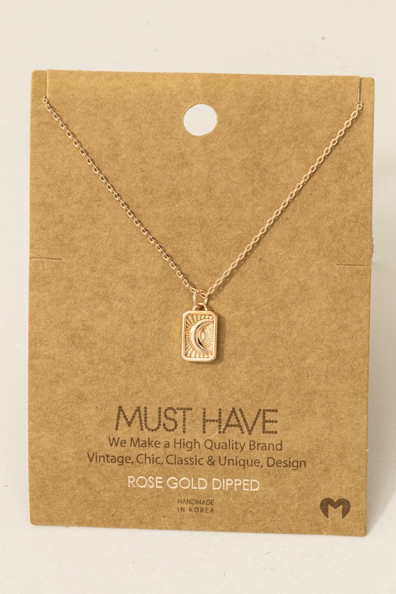 - This pendant necklace introduces a unique crescent moon rectangle style. Step into a world of refined taste as this pendant necklace effortlessly refines the details of your outfit.