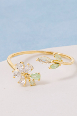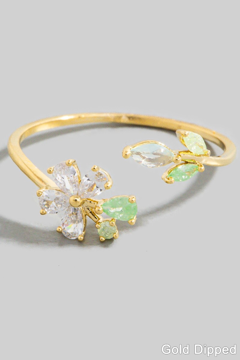 • This ring introduces a unique gold dipped cubic zirconia flower leaf open style. Discover the perfect balance of functionality and fashion.