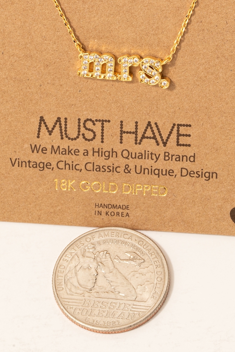 - This necklace brings a stunning gold dipped cubic zirconia pave mrs pendant style. Witness the transformative power of accessories as this piece effortlessly redefines your fashion narrative.