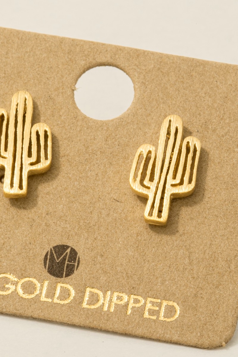 - This trending pair of earrings brings a unique gold dipped dainty desert cactus stud earrings style. Experience a burst of creativity in accessorizing as this piece effortlessly sets the tone for your unique style.