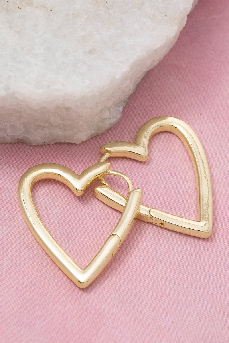 - This pair of hoop earrings showcases a timeless gold dipped hinge heart style. Experience the joy of accessorizing with this piece that effortlessly combines versatility and charm.
