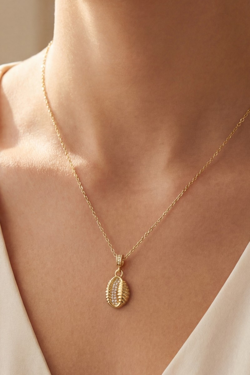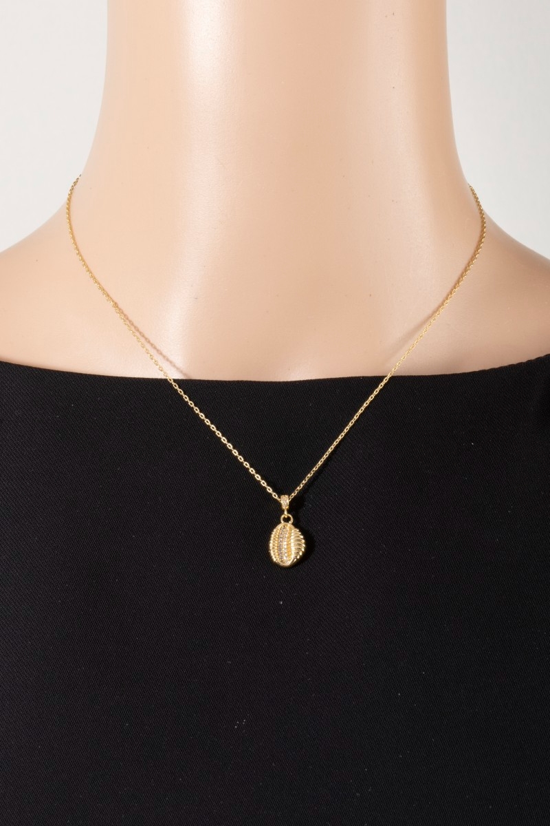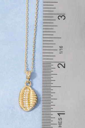 Gold Dipped Cz Seashell Pendant Necklace