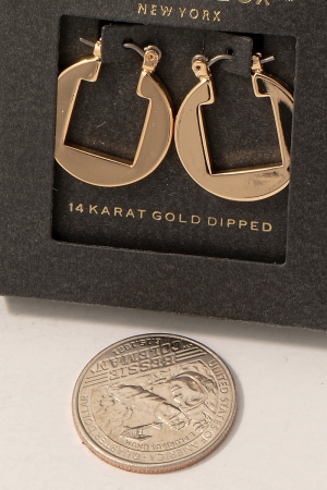 - This pair of hoop earrings brings a unique gold dipped square cut out style. Embark on a journey of sartorial refinement as this pair of hoop earrings effortlessly complements your fashion sense.