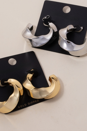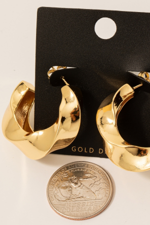 • This pair of hoop earrings introduces a unique gold dipped twisted square tube style. Celebrate individual style with this versatile, eye-catching addition.