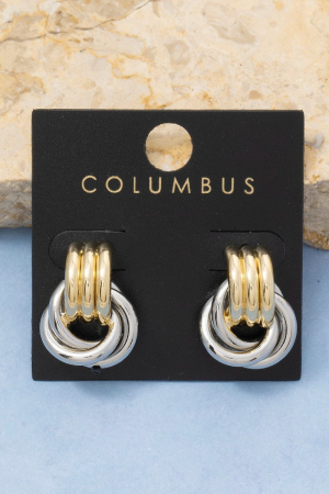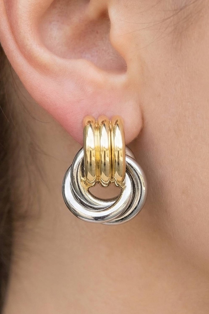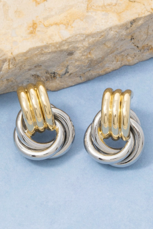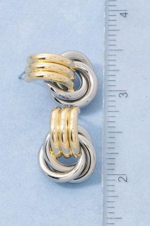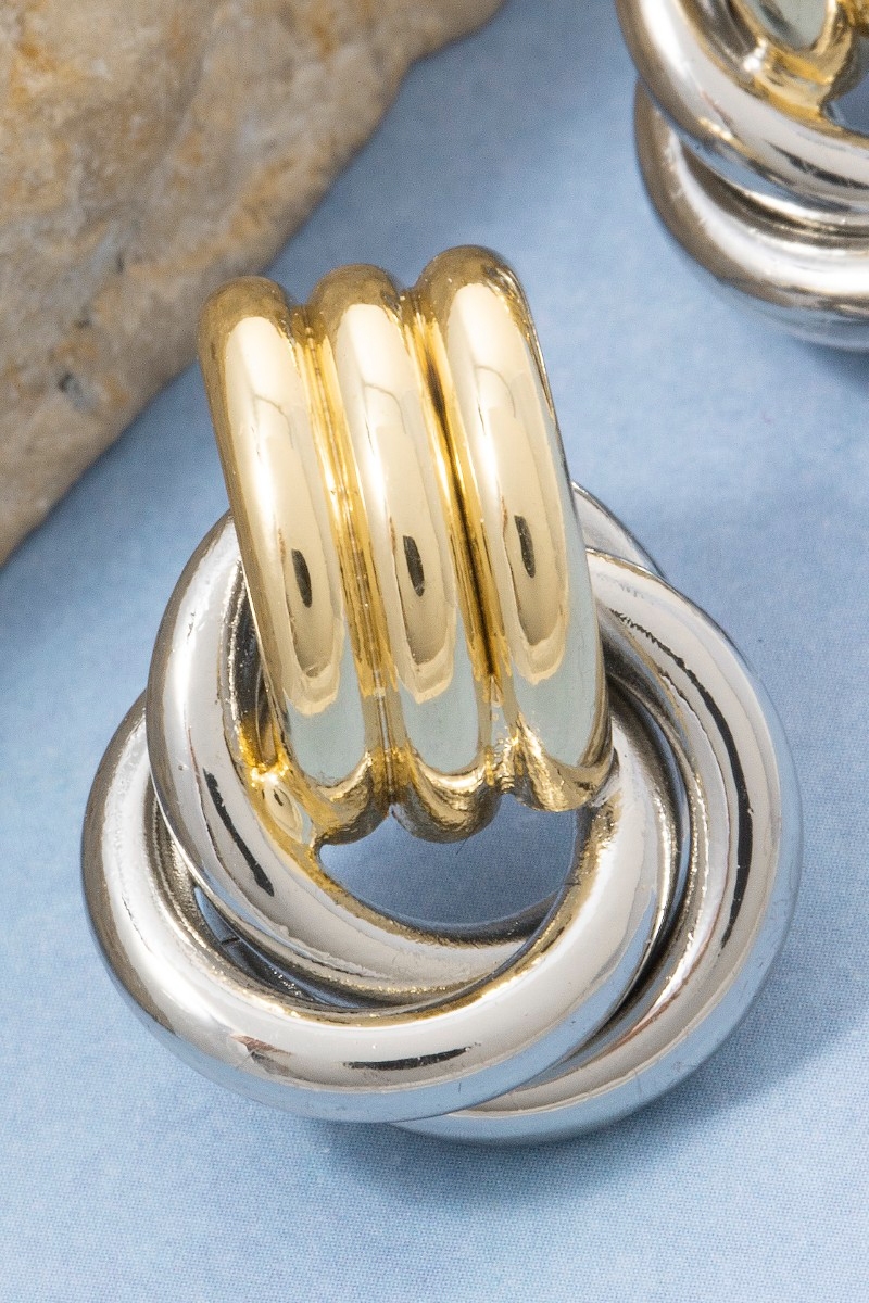 • This pair of stud earrings brings a stunning gold dipped two tone knot style. Indulge in the allure of exquisite craftsmanship as this pair of stud earrings effortlessly adds a touch of luxury to your attire.