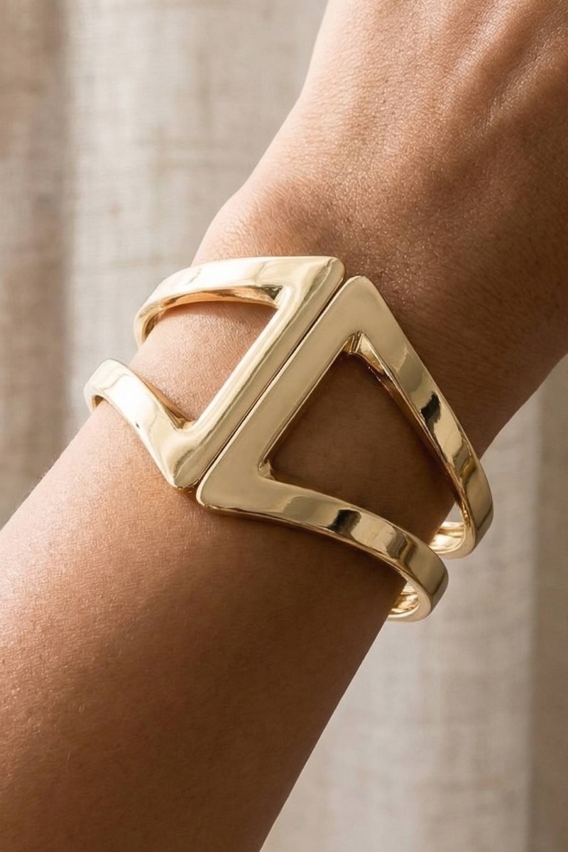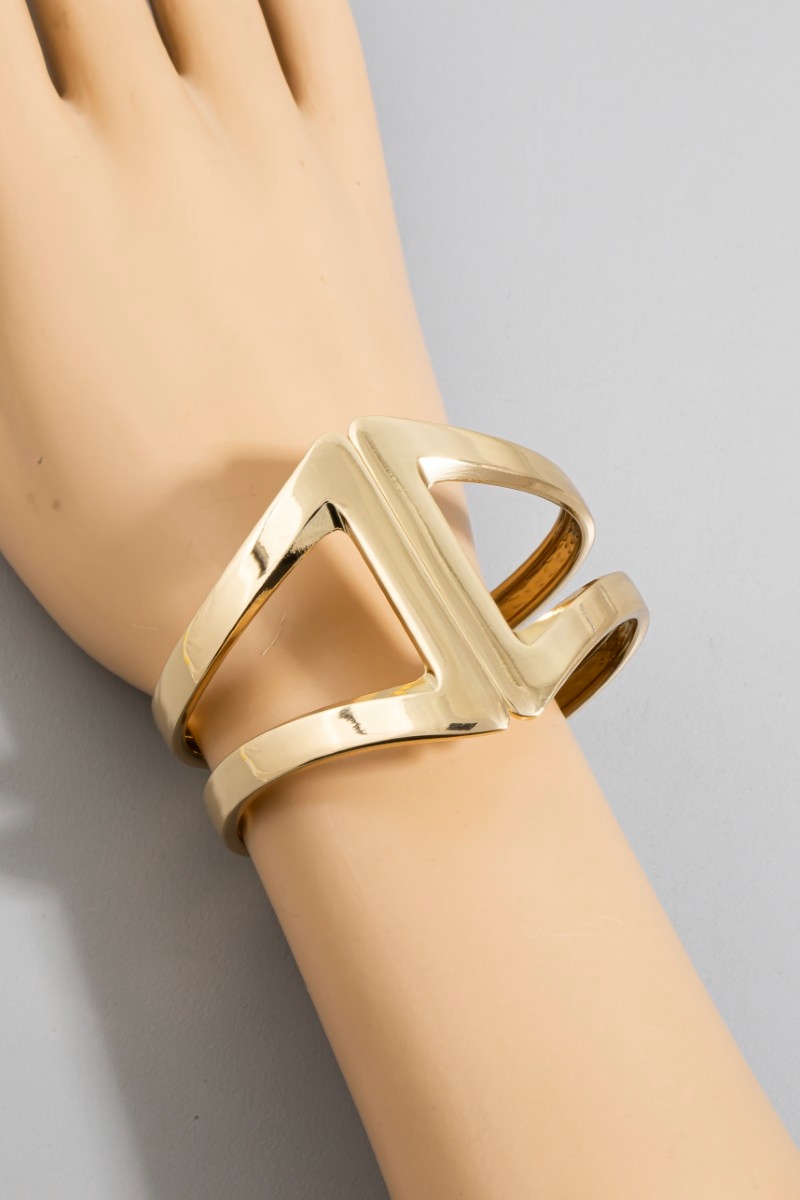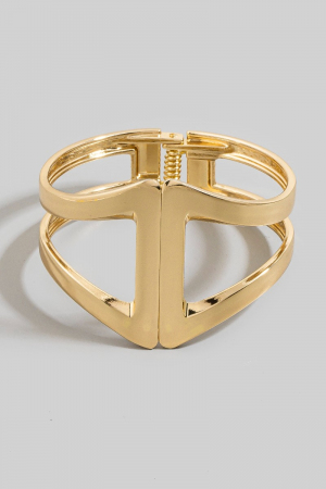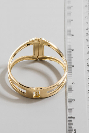 - This bangle bracelet features a fashionable gold dipped wide hinge set style. Elevate your ensemble with this bangle bracelet that effortlessly captures the essence of refined fashion.