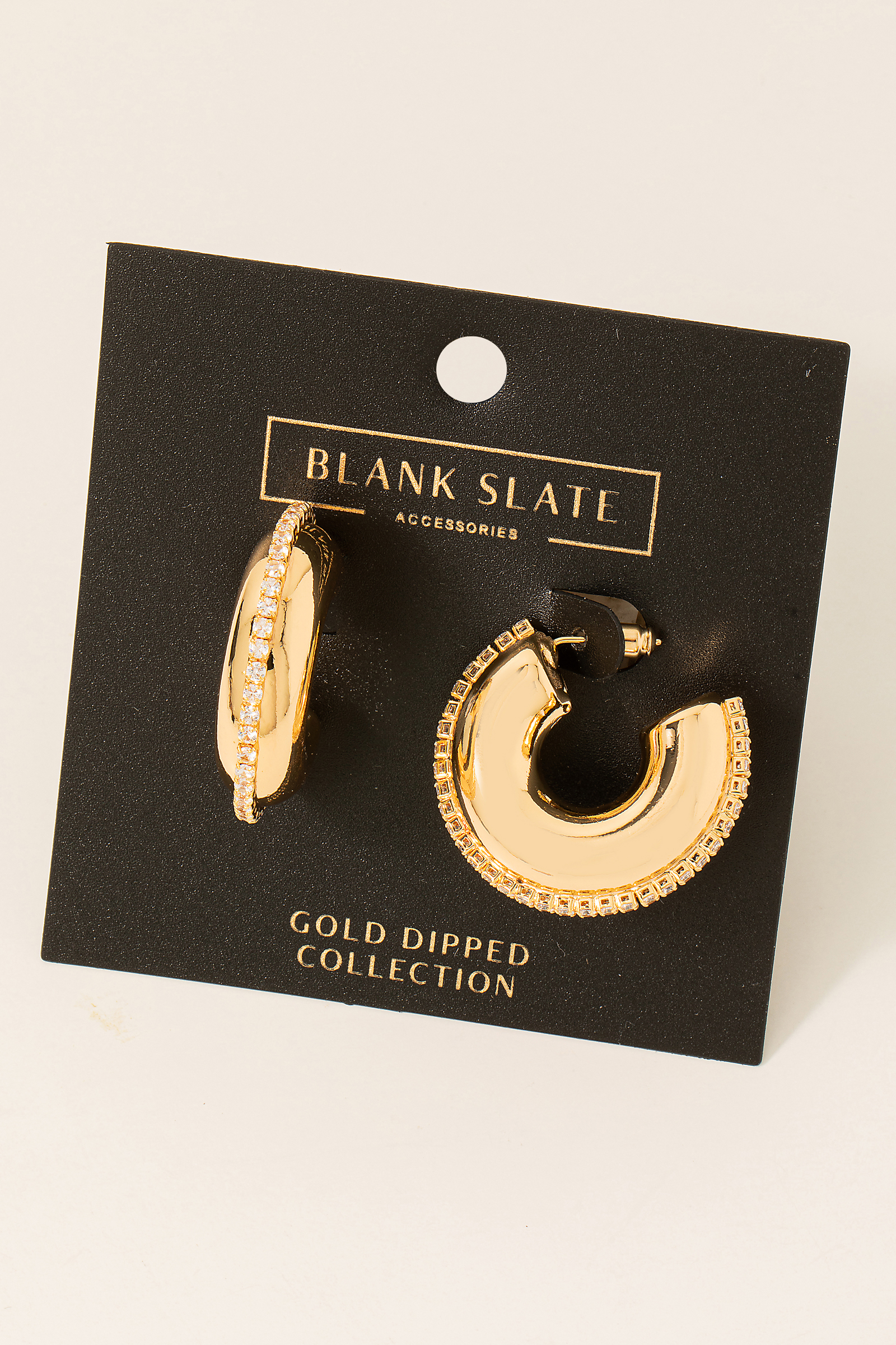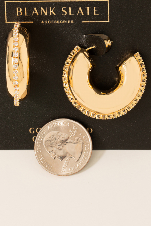 • This pair of hoop earrings showcases a timeless gold dipped wide round style. Unveil modern elegance with this subtly intricate accessory.