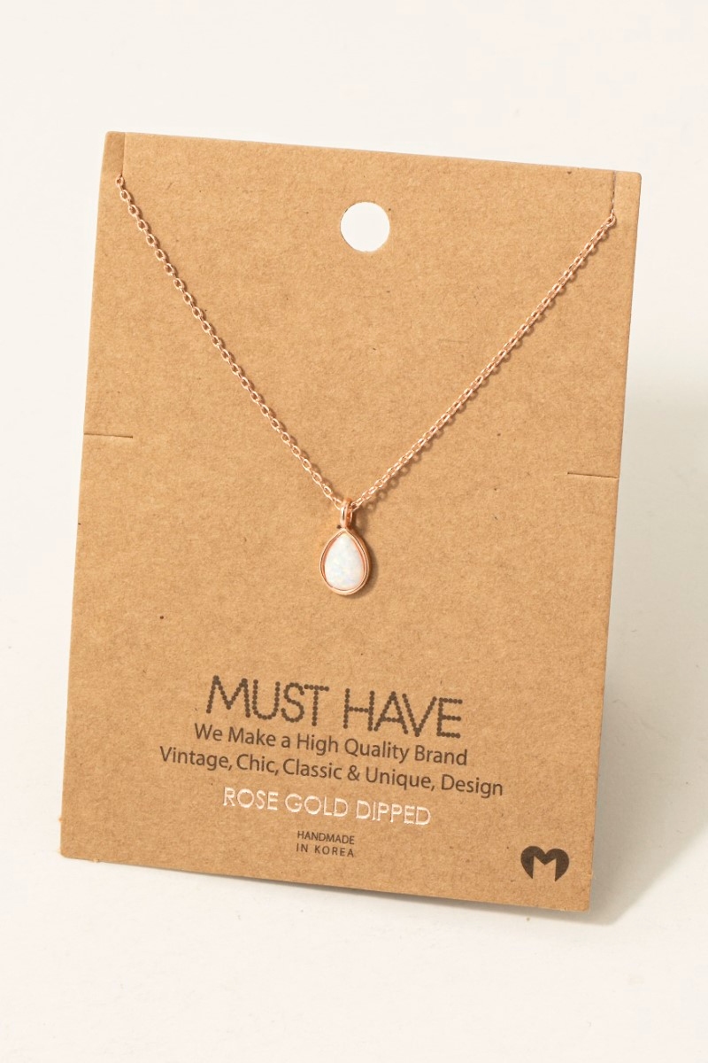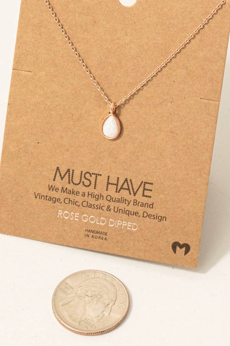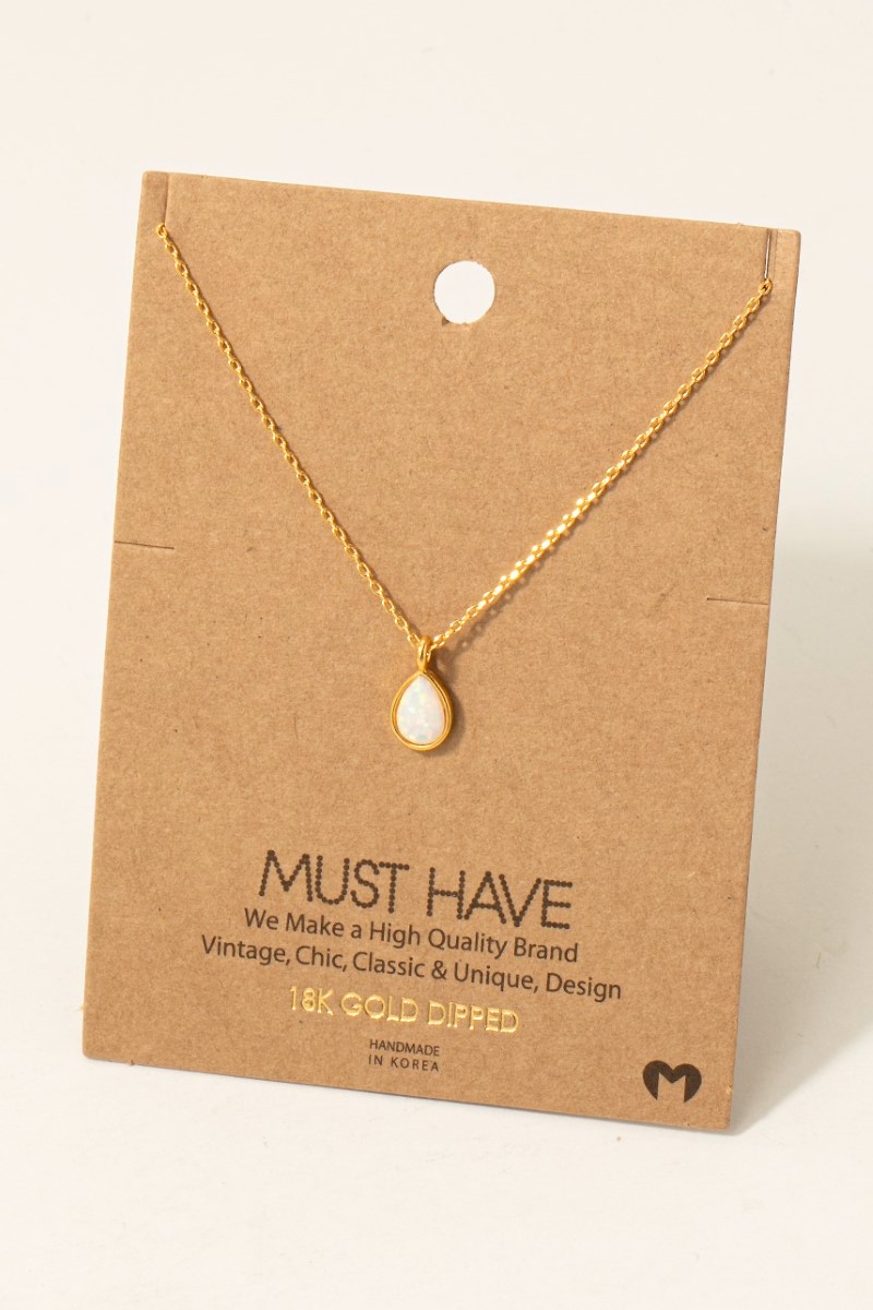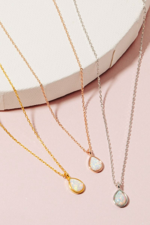 • This chain necklace adds a modern gold dipped opal tear pendant style. Indulge in the allure of exquisite craftsmanship as this chain necklace effortlessly adds a touch of luxury to your attire.