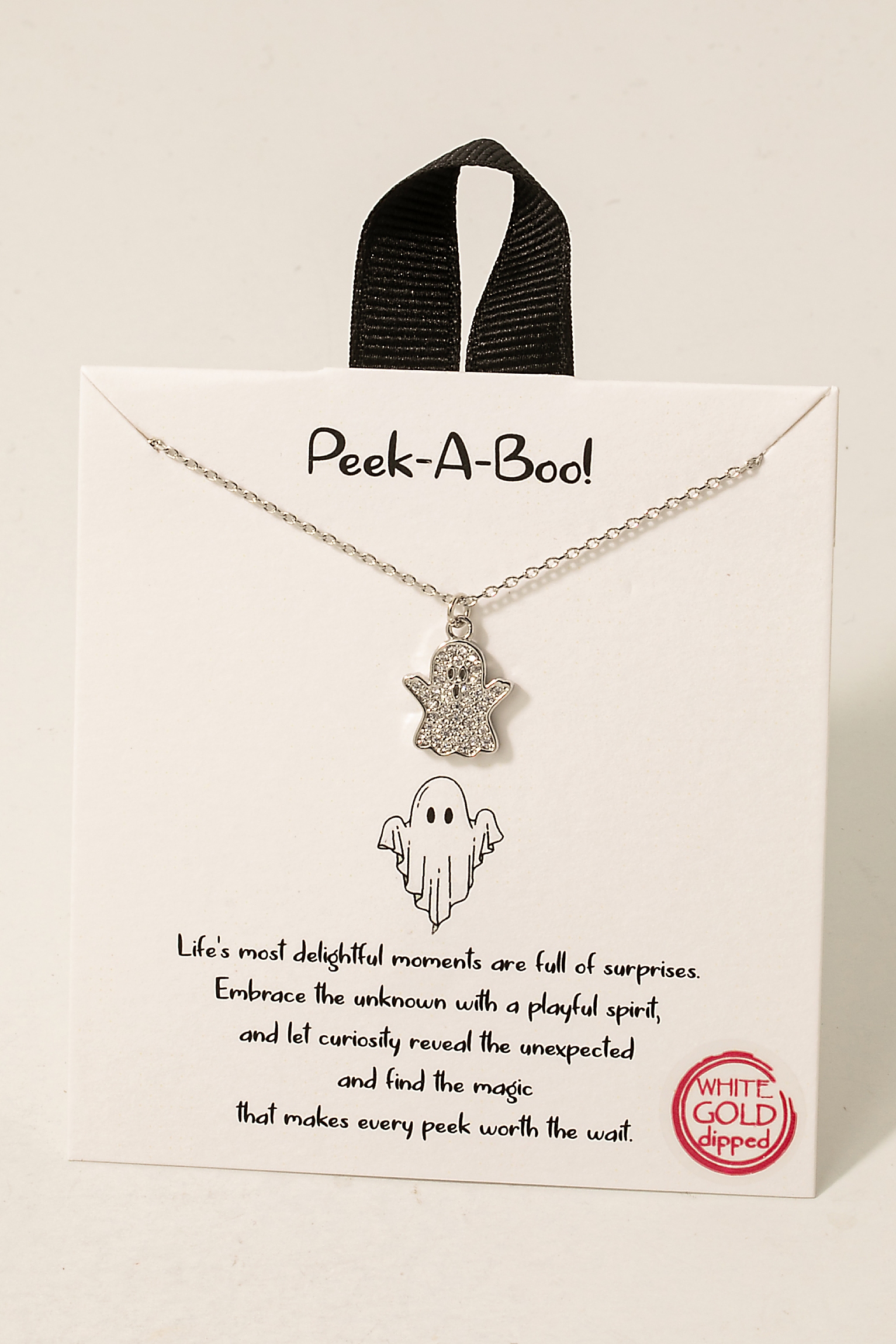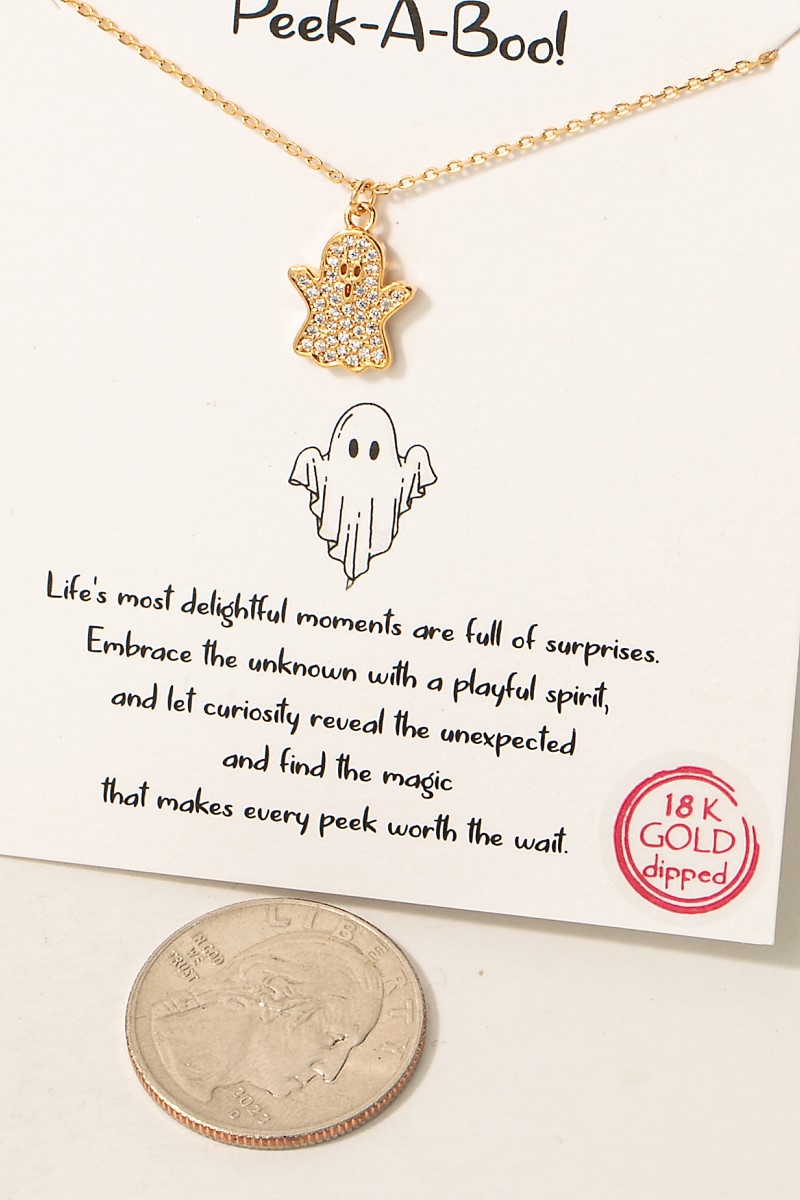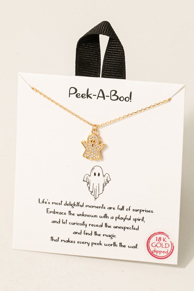 - This necklace brings a unique gold dipped peek a boo ghost pendant style. Witness the perfect fusion of style and functionality as this necklace effortlessly complements your lifestyle.