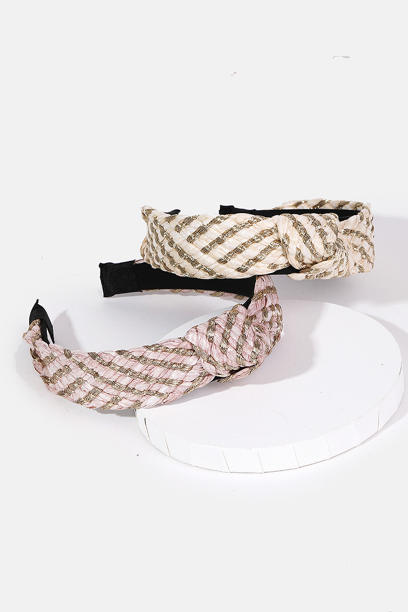 - This headband introduces a unique braided knot twist set style. Discover the perfect balance of subtlety and flair as this accessory effortlessly completes your look.