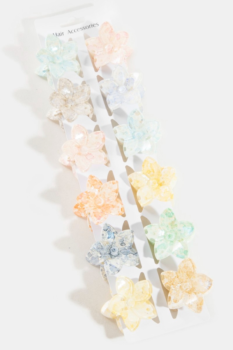 - This introduces a unique 12pc mixed pointy paint splatter flower hair claw set style. Experience the joy of accessorizing with this piece that effortlessly combines versatility and charm.