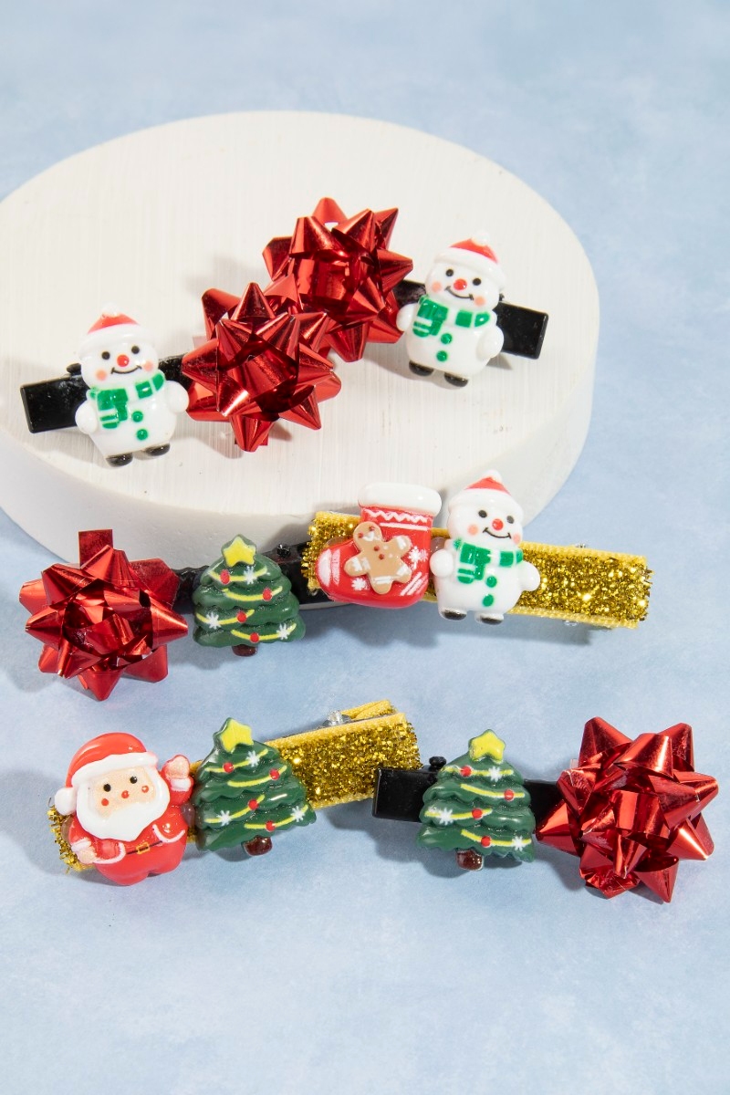 - This hair clip brings a luxurious 6pc assorted festive christmas theme set style. Discover the perfect balance of functionality and fashion.